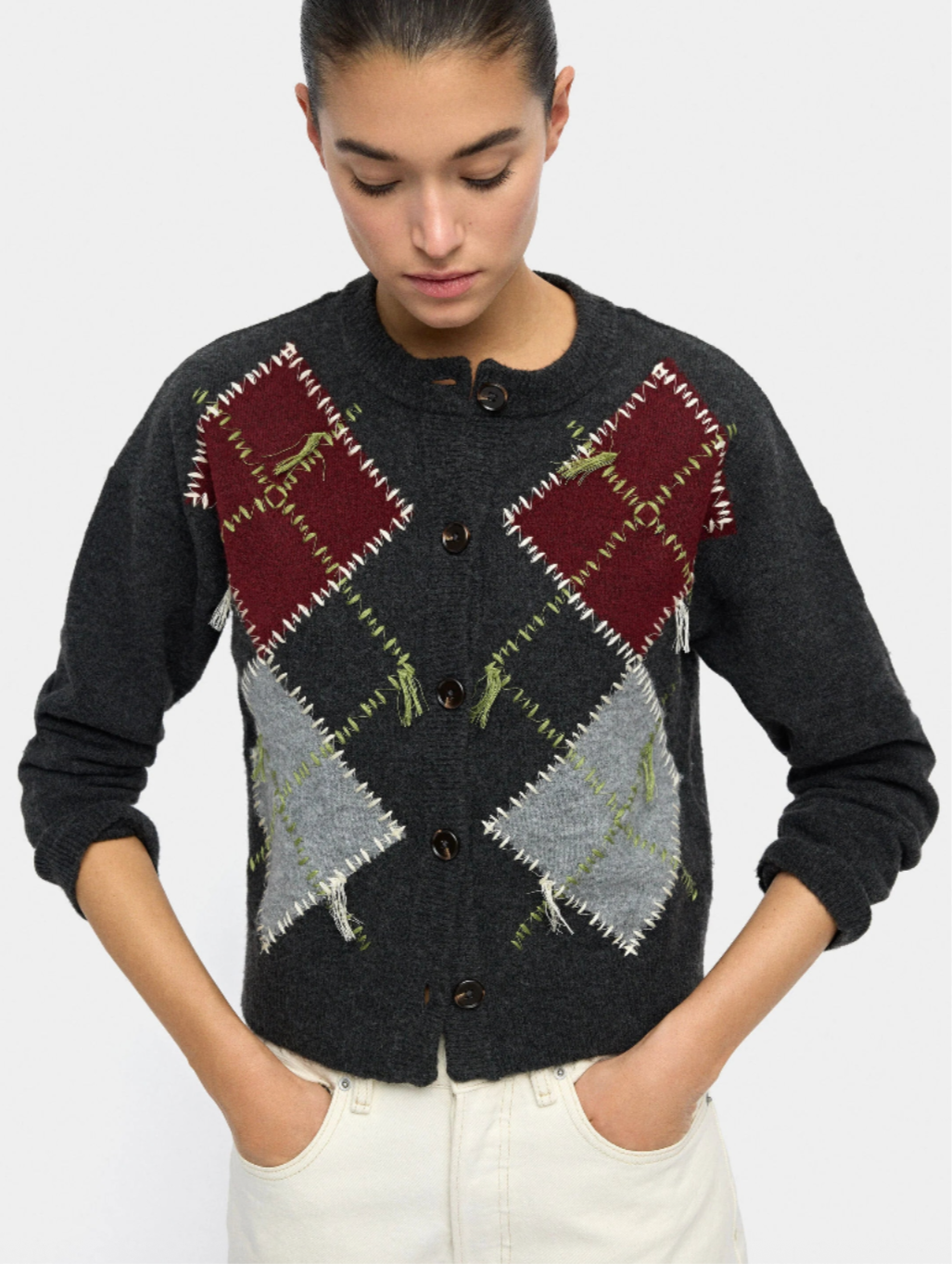 Cárdigan de punto con rombos Q399