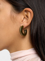 Aros abiertos de resina con línea metálica en el medio. Acabado dorado y brillante.