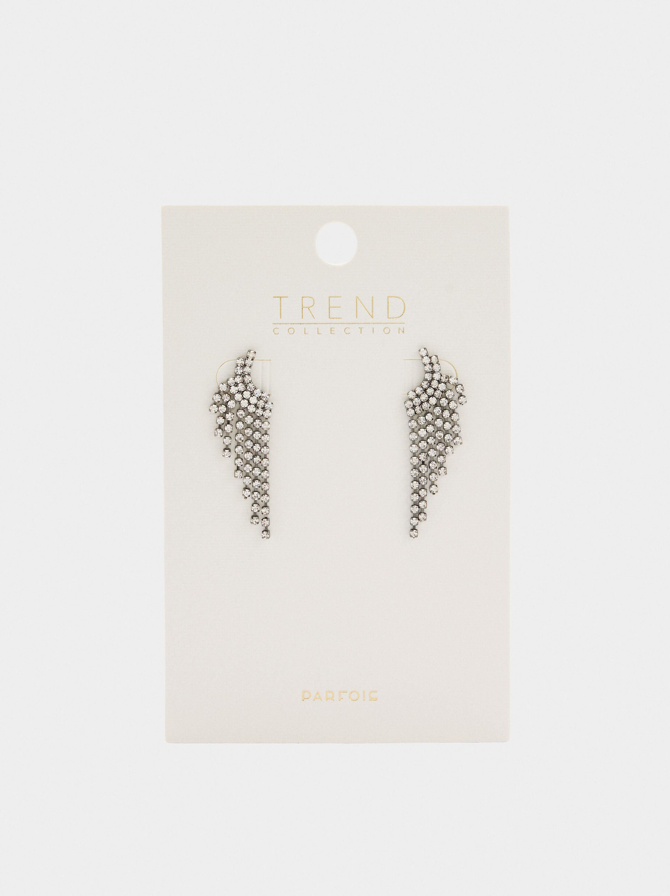 Pendientes de tamaño medio con cristales. Efecto cascada. Acabado plateado.