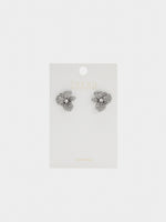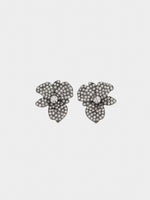 Pendientes en forma de flor con cristales. Acabado plateado oscurecido.