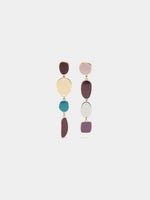 Pendientes largos asimétricos de formas geométricas con esmalte. Acabado dorado y plateado.