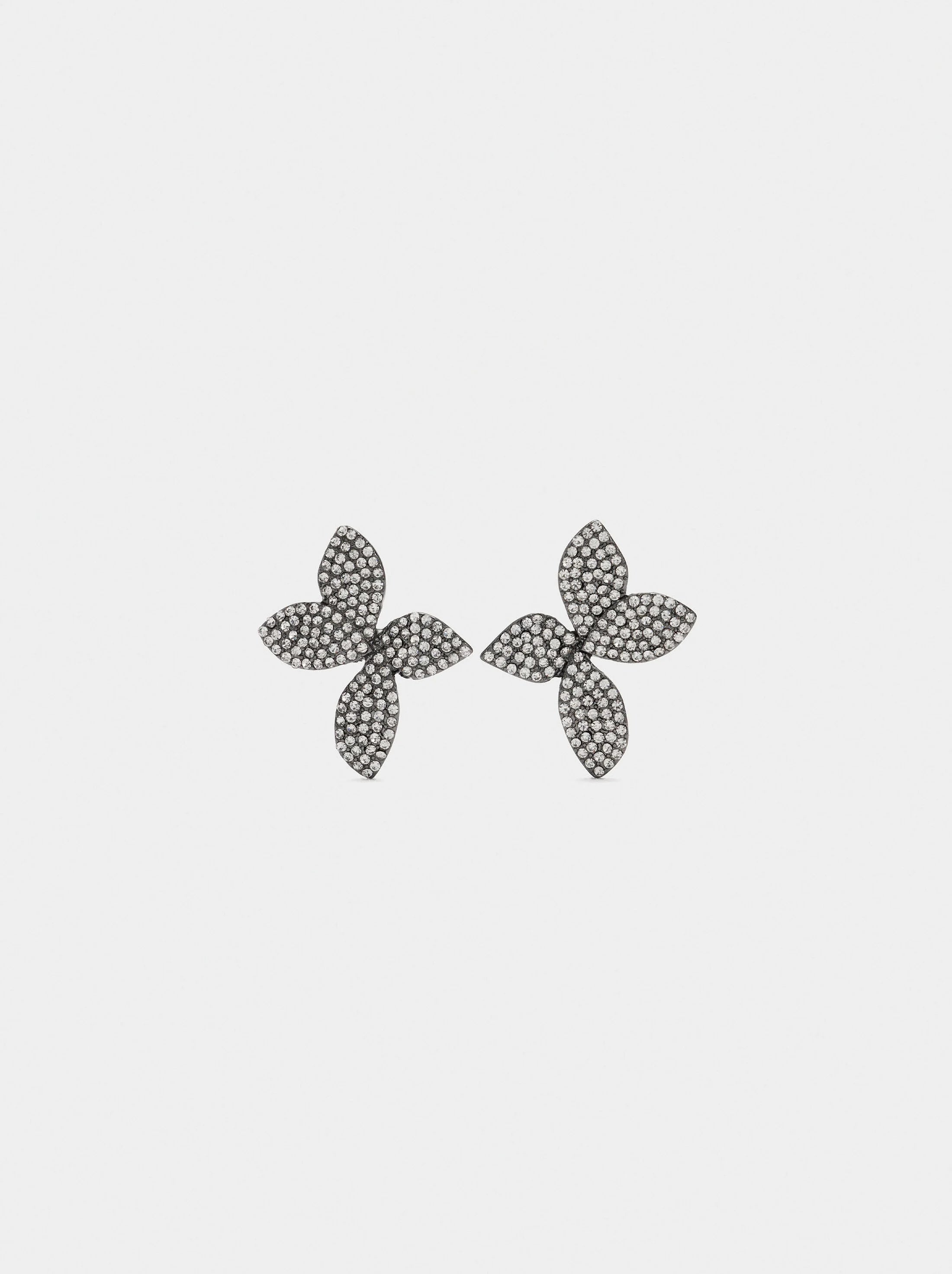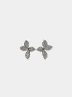 Pendientes en forma de maxi flor con cristales. Acabado plateado oscurecido.