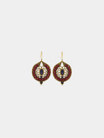 Pendientes redondos de diseño tipo filigrana, con detalles multicolor. Efecto envejecido. Acabado dorado.