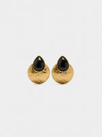 Pendientes redondos convexos con detalle de resina en forma de lágrima. Acabado dorado con efecto envejecido.