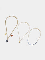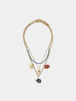 Esta colección de bisutería está inspirada en la magia celestial y en la diversidad de las formas. Combina figuras geométricas, flores, corazones y elefantes en anillos, collares, pulseras y pendientes. Sus piezas, adornadas con piedras, cristales, esmalte o resina semitransparente, brillan en tonos de azul, terracota y ocre, evocando los reflejos y secretos del cielo nocturno.