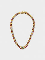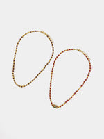 Set de dos collares cortos de cuentas. Colgante de diseño étnico con detalles multicolor en arcilla. Efecto envejecido. Acabado dorado.