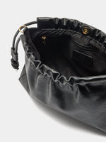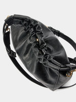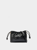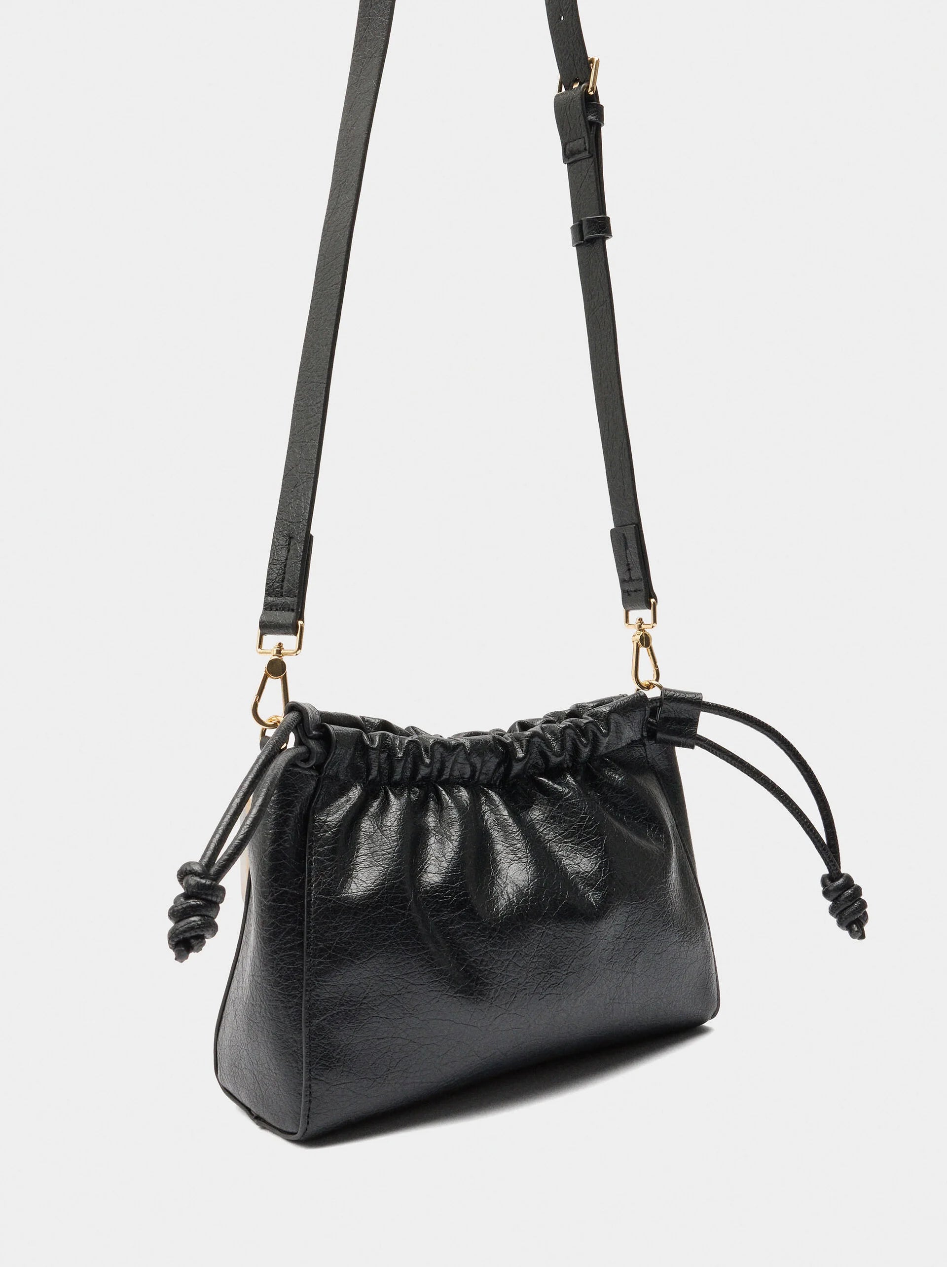 Bolso bandolera pequeño de efecto craquelado. Forro y bolsillo interior. Cierre con imán y cordón para fruncir. Asa ajustable y extraíble.
