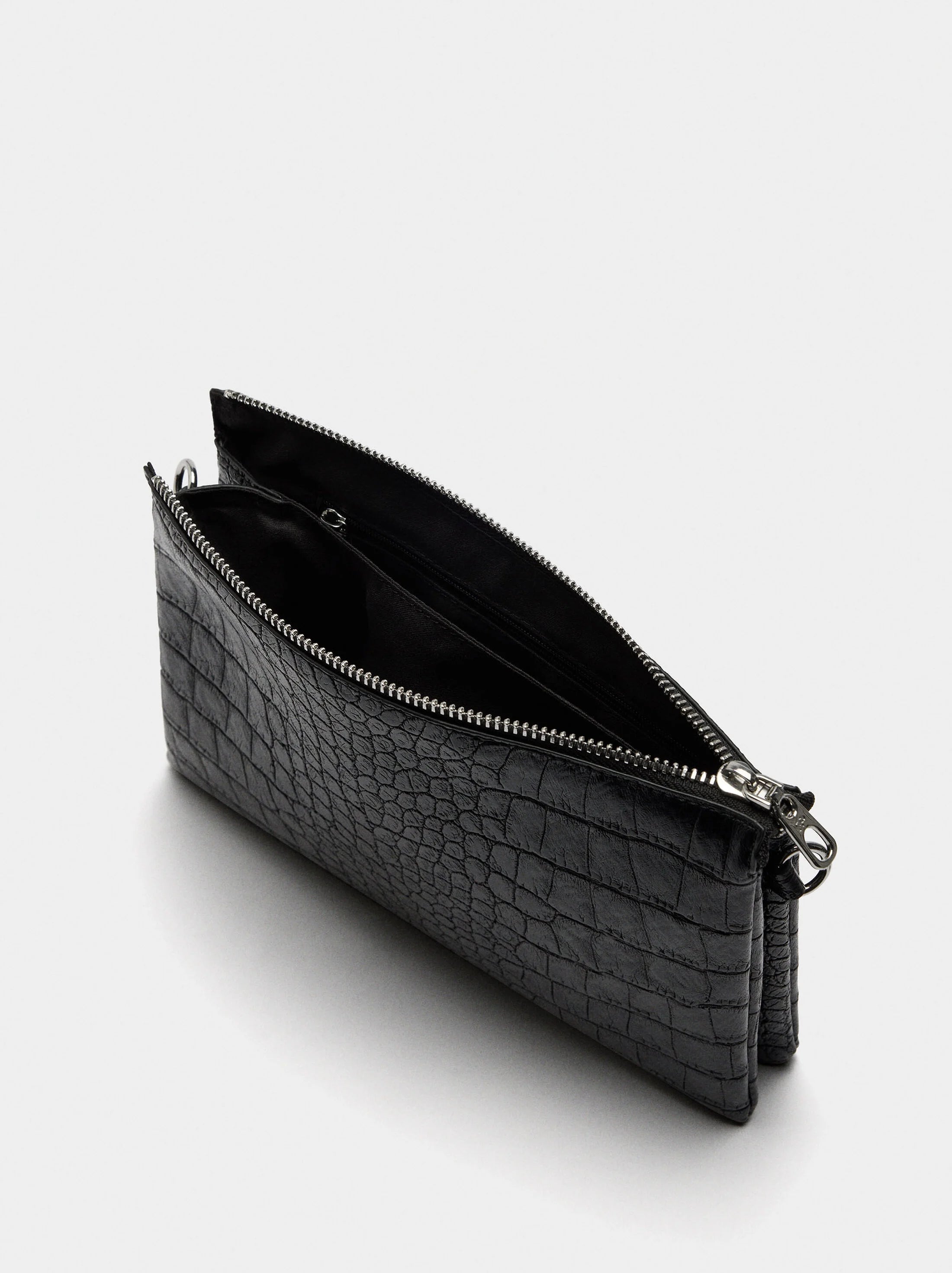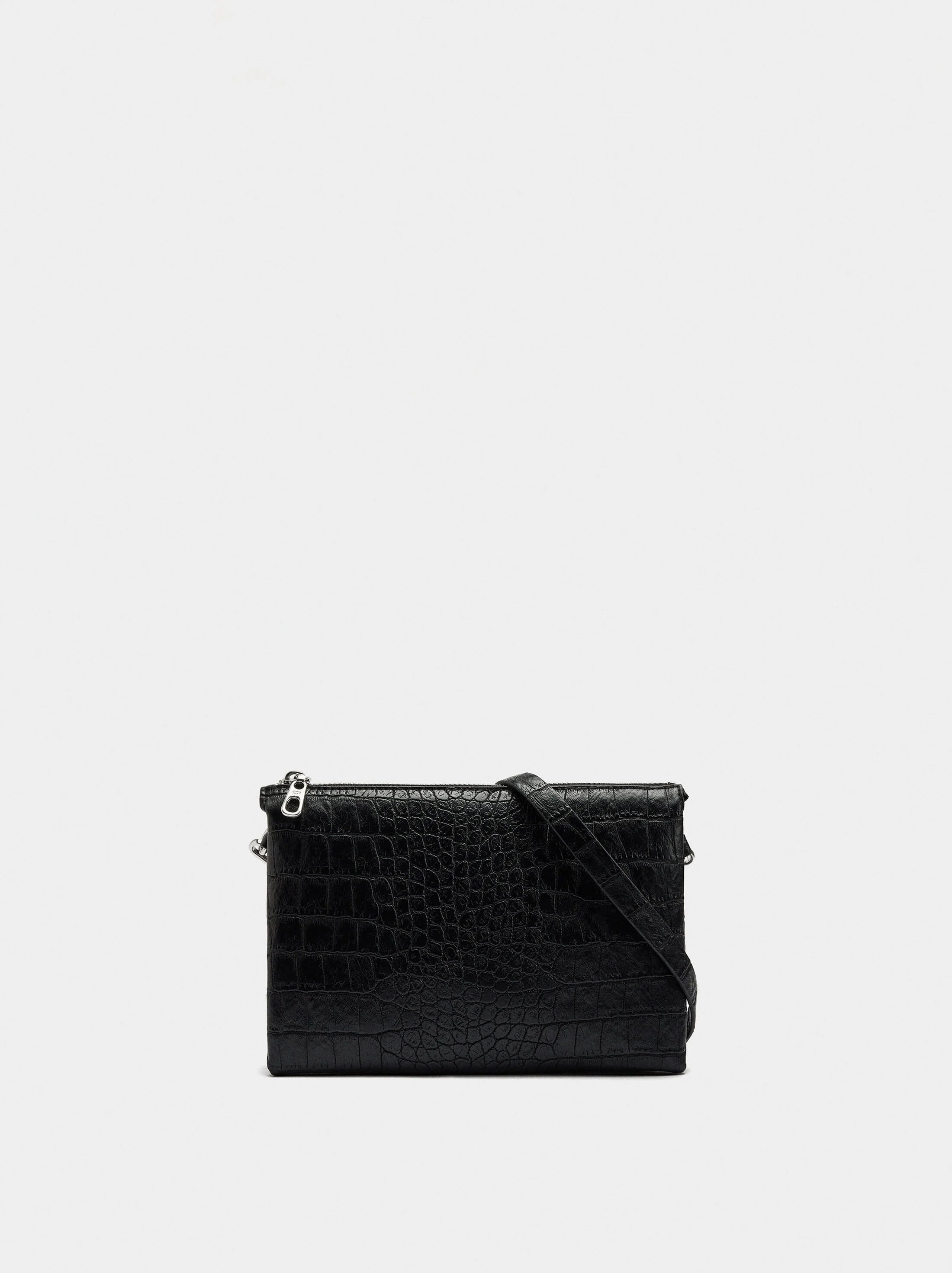 Bolso bandolera con grabado animal. Forro y bolsillo interior. Dos divisiones. Cierre de cremallera. Asa ajustable y extraíble.