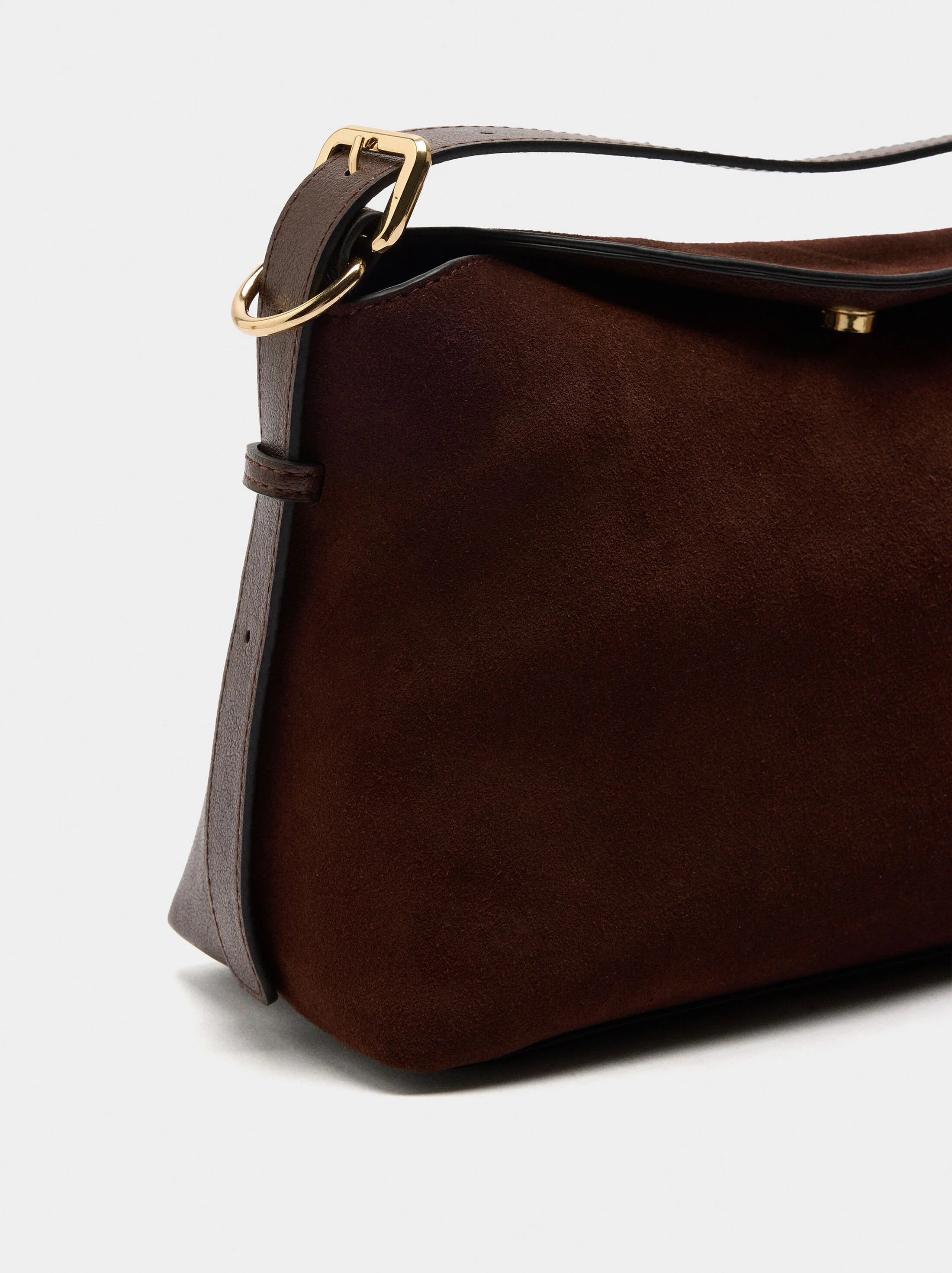 Bolso bandolera con detalles de piel. Forro y bolsillo interior. Cierre de solapa imantado. Bolsillo exterior. Asa ajustable y extraíble.