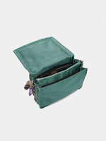 Bolso bandolera grande de nylon estructurado. Cierre de solapa imantada. Dos compartimentos. Forro y bolsillo interior. Bolsillo trasero exterior. Colgante extraíble. Asa ajustable y extraíble que puede usarse como asa de mano o de hombro.Composición, cuidado y origen