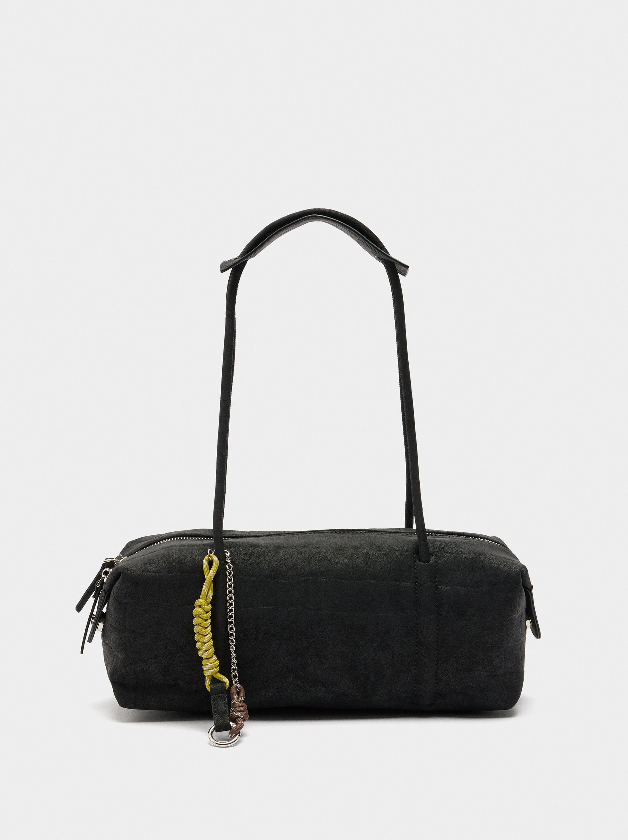 Bolso de hombro rectangular con estampado animal. Forro y bolsillo interior. Cierre de cremallera. Asas fijas con apoyo para los hombros. Detalle colgante con cadena, extraíble.