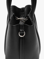 Bolso tote pequeño con bandolera ajustable y removible. Forro interior. Compartimento central con cierre de cremallera. Cierre con mosquetón. Asas de mano dobles y fijas.