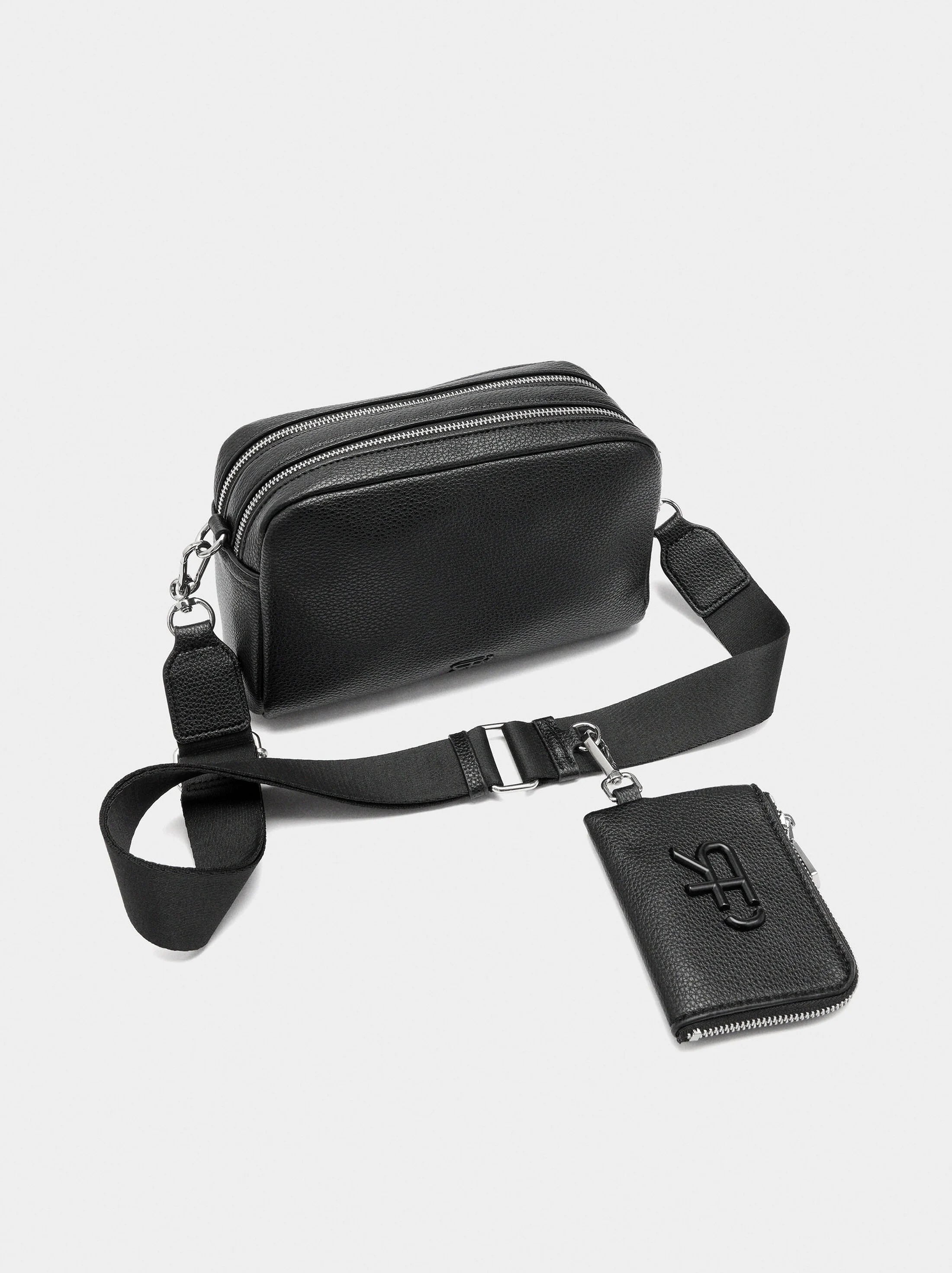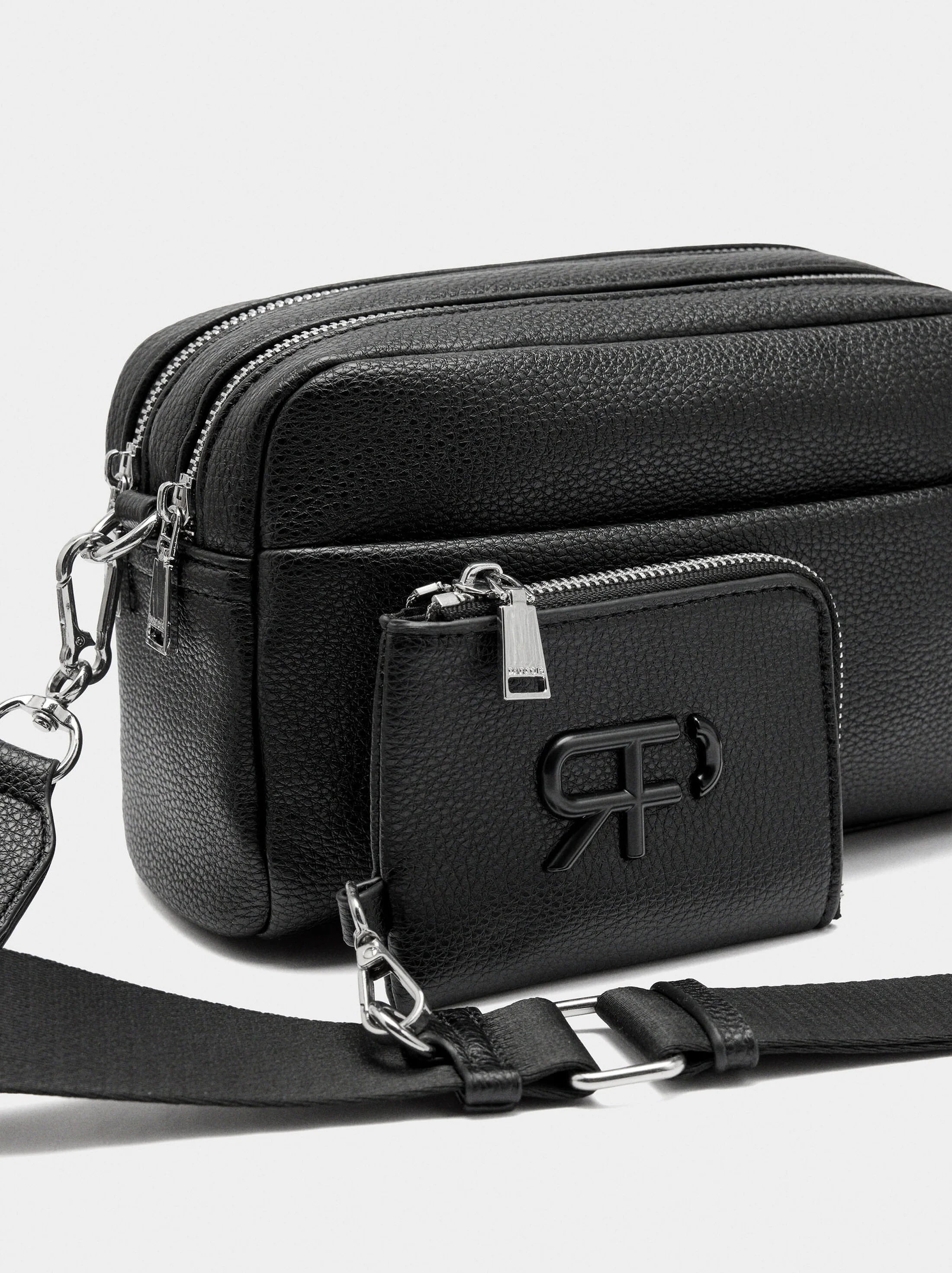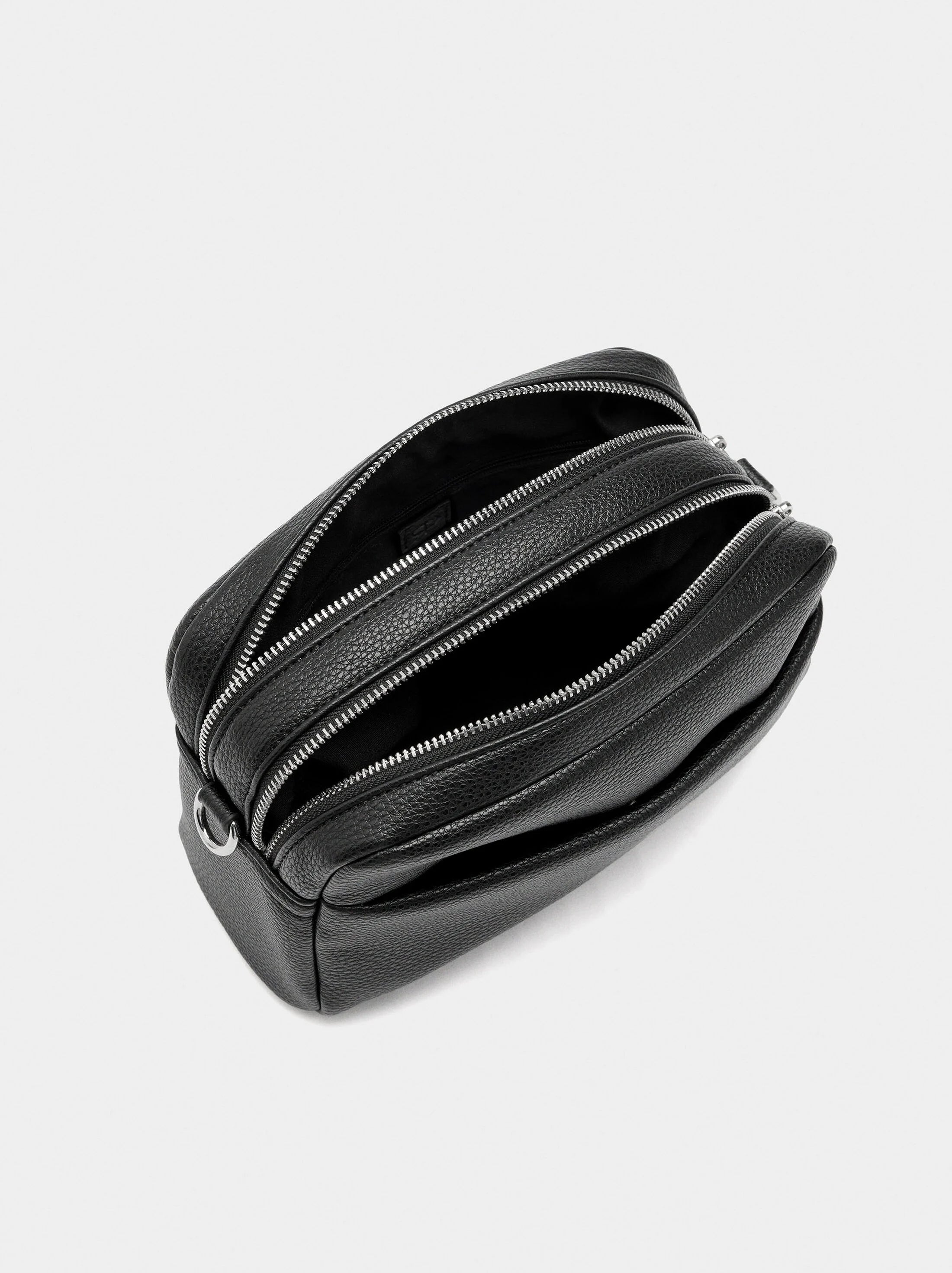Bolso bandolera de tamaño medio con textura. Forro y bolsillo interior. Cierre de cremallera doble. Bolsillo exterior. Asa ajustable con colgante removible.