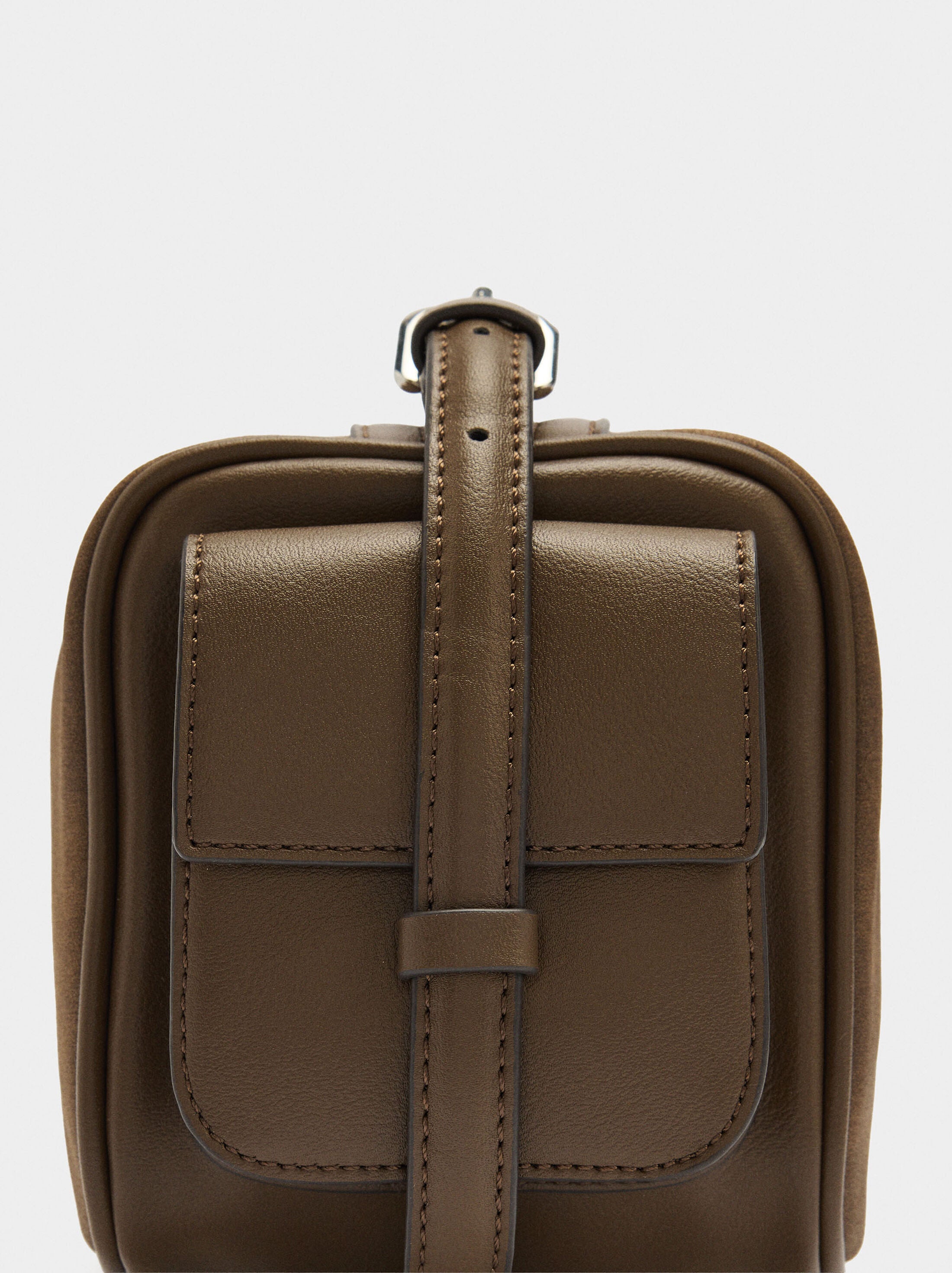 Bolso de hombro rectangular de tamaño medio. Efecto piel. Forro y bolsillo interior. Cierre de cremallera. Bolsillos laterales. Asa fija ajustable.