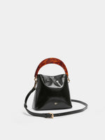 Bolso de mano de fiesta con asa rígida efecto carey. Forro interior. Cierre con solapa imantada. Incluye asa bandolera ajustable y extraíble.