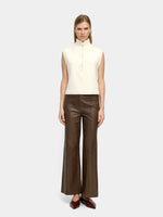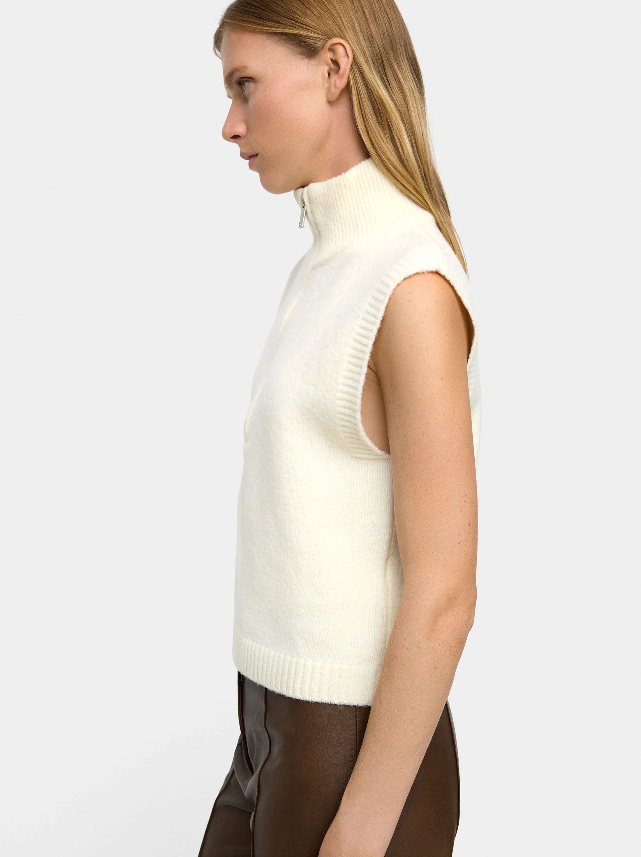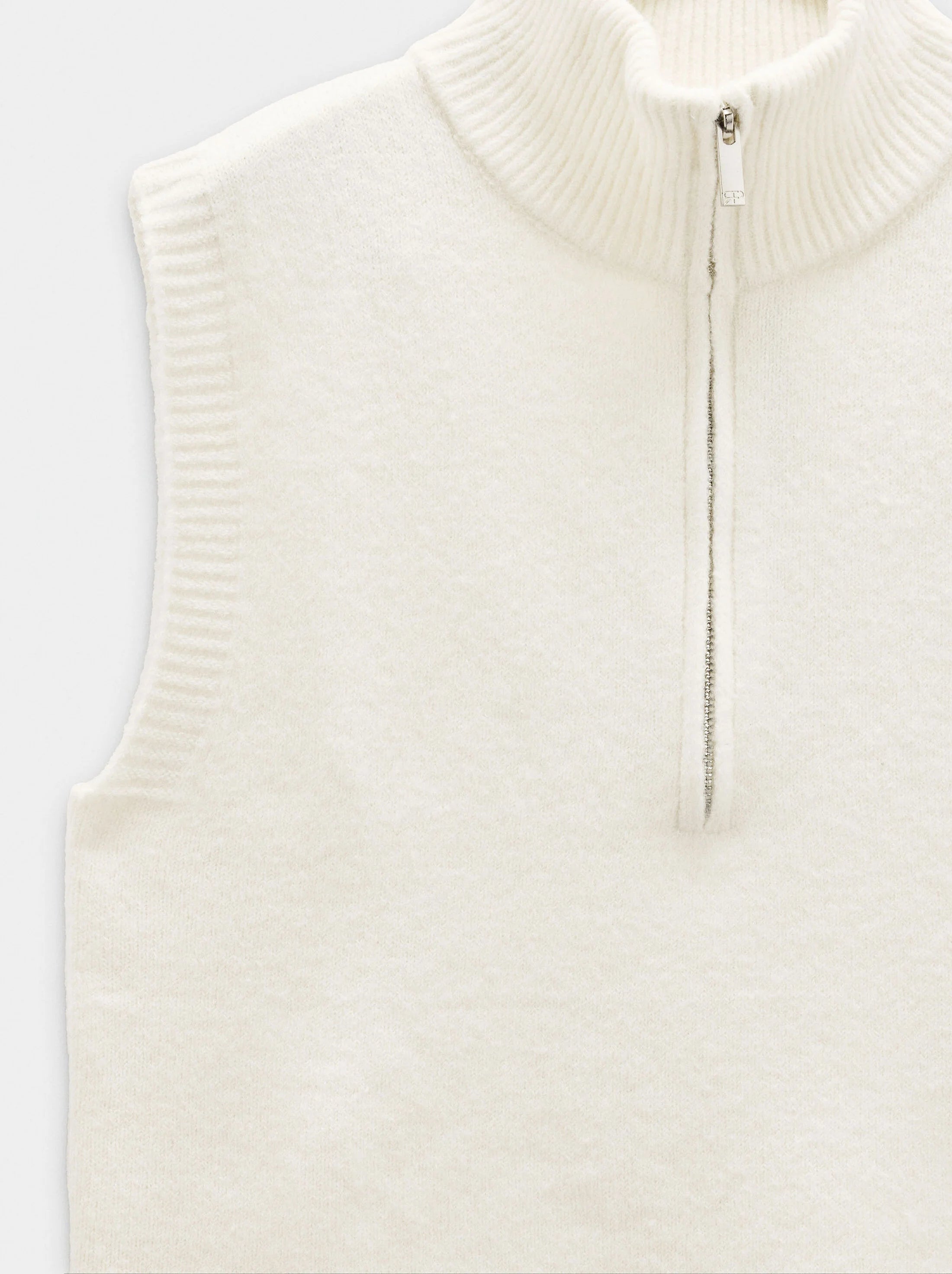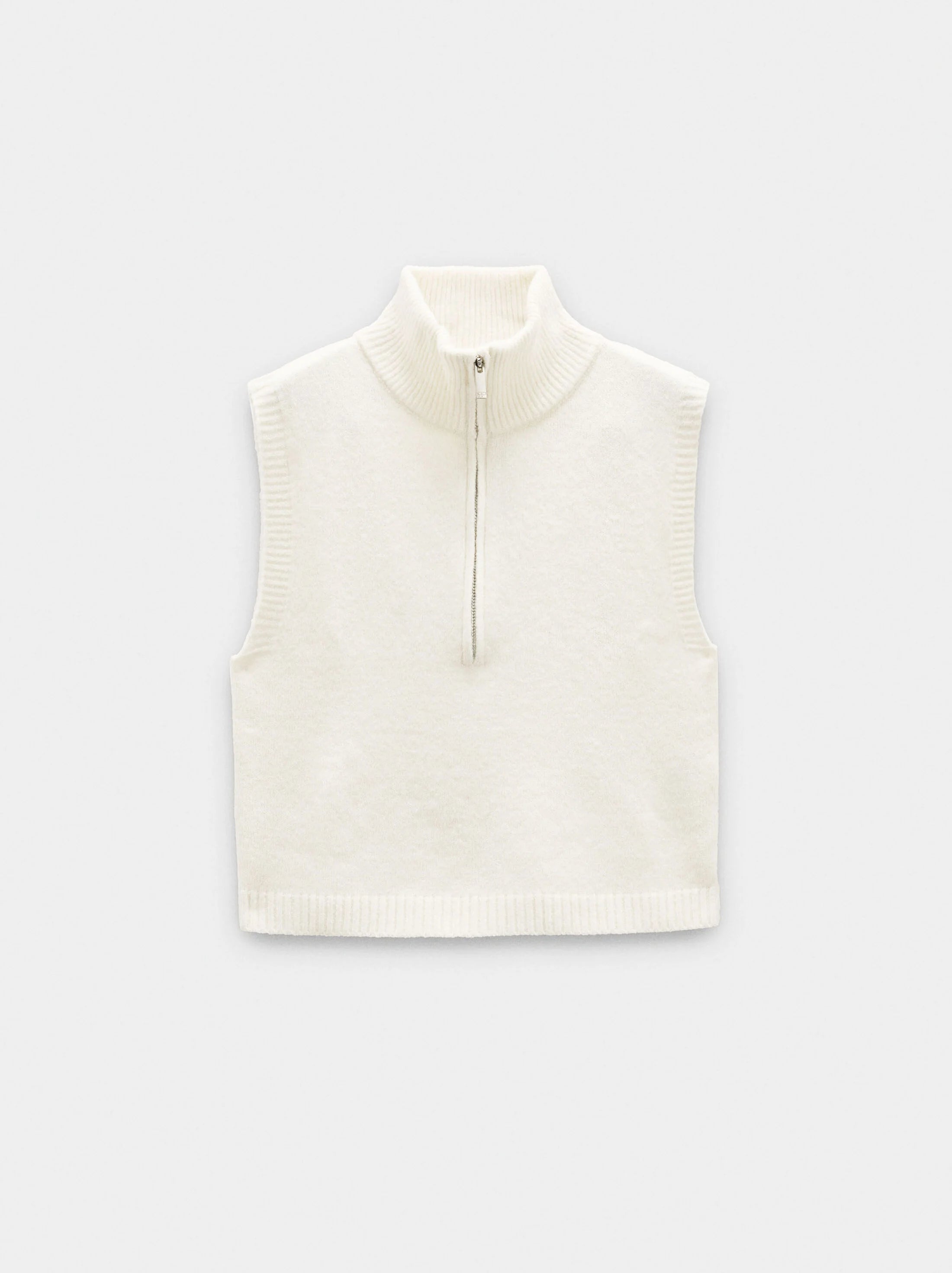 Chaleco de punto con cierre de cremallera. Cuello alto con cierre de cremallera. Sin mangas. Bordes canalados. La modelo mide 1,80 m y lleva la talla XS-S.