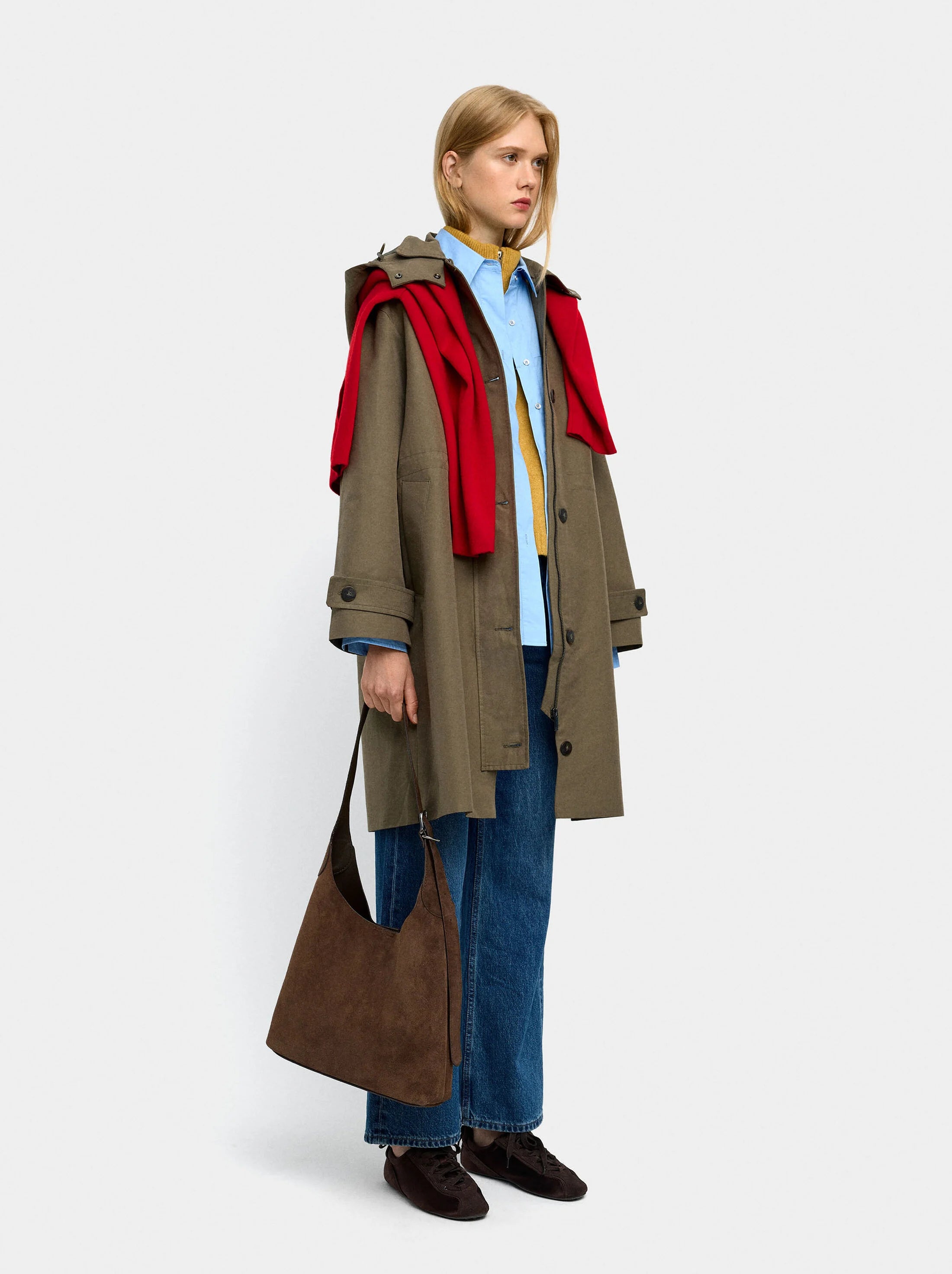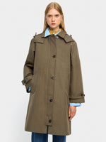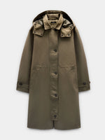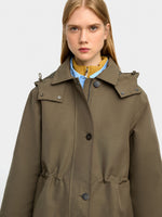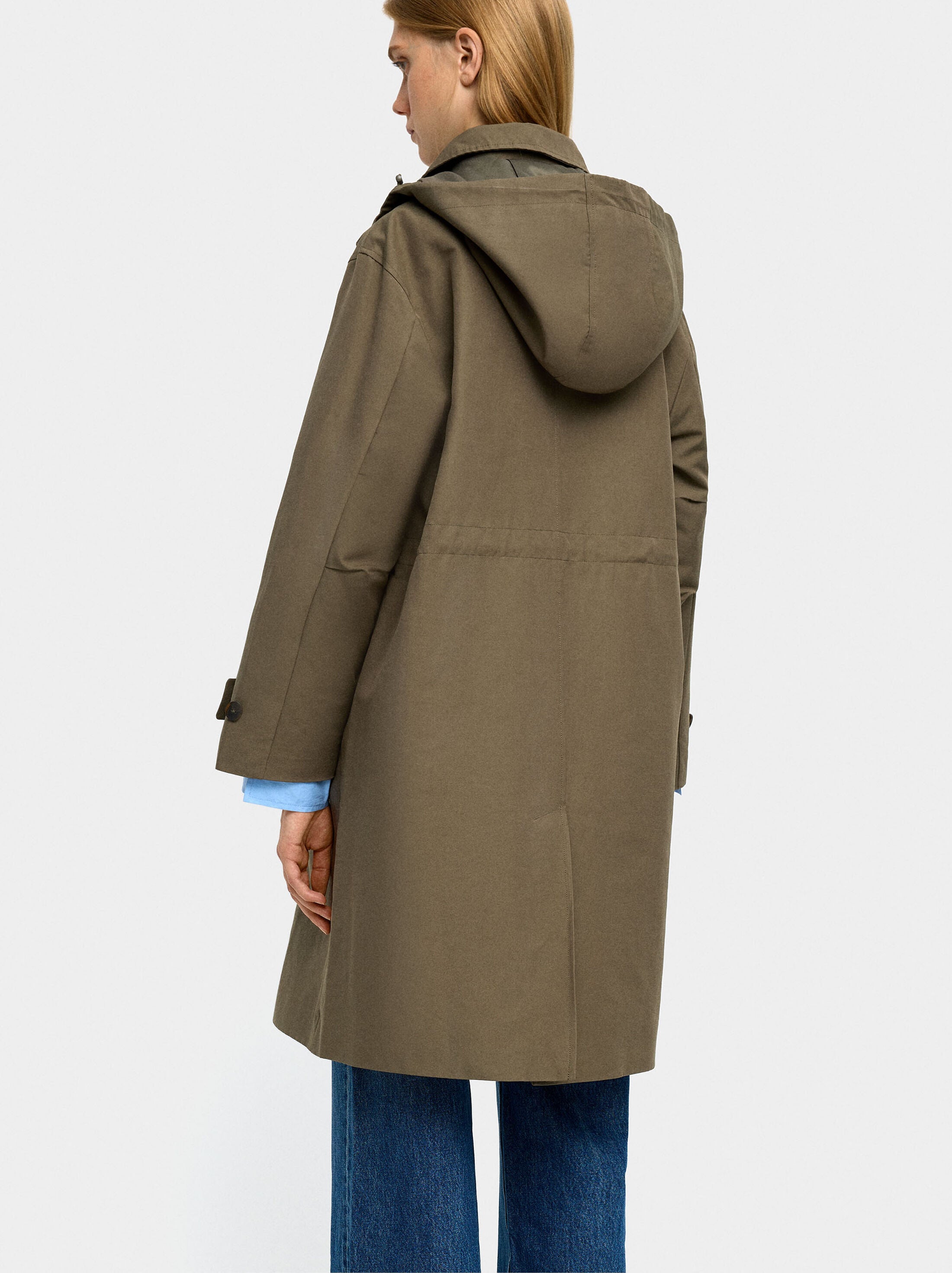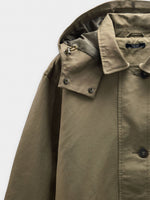 Parka ligera con capucha y bolsillos laterales. Cuello de solapa. Manga larga con detalle de botones en los puños. Cinta elástica en la cintura para ajustar. Cierre de cremallera oculto con botones. La modelo mide 1,75 m y lleva la talla XS-S.