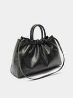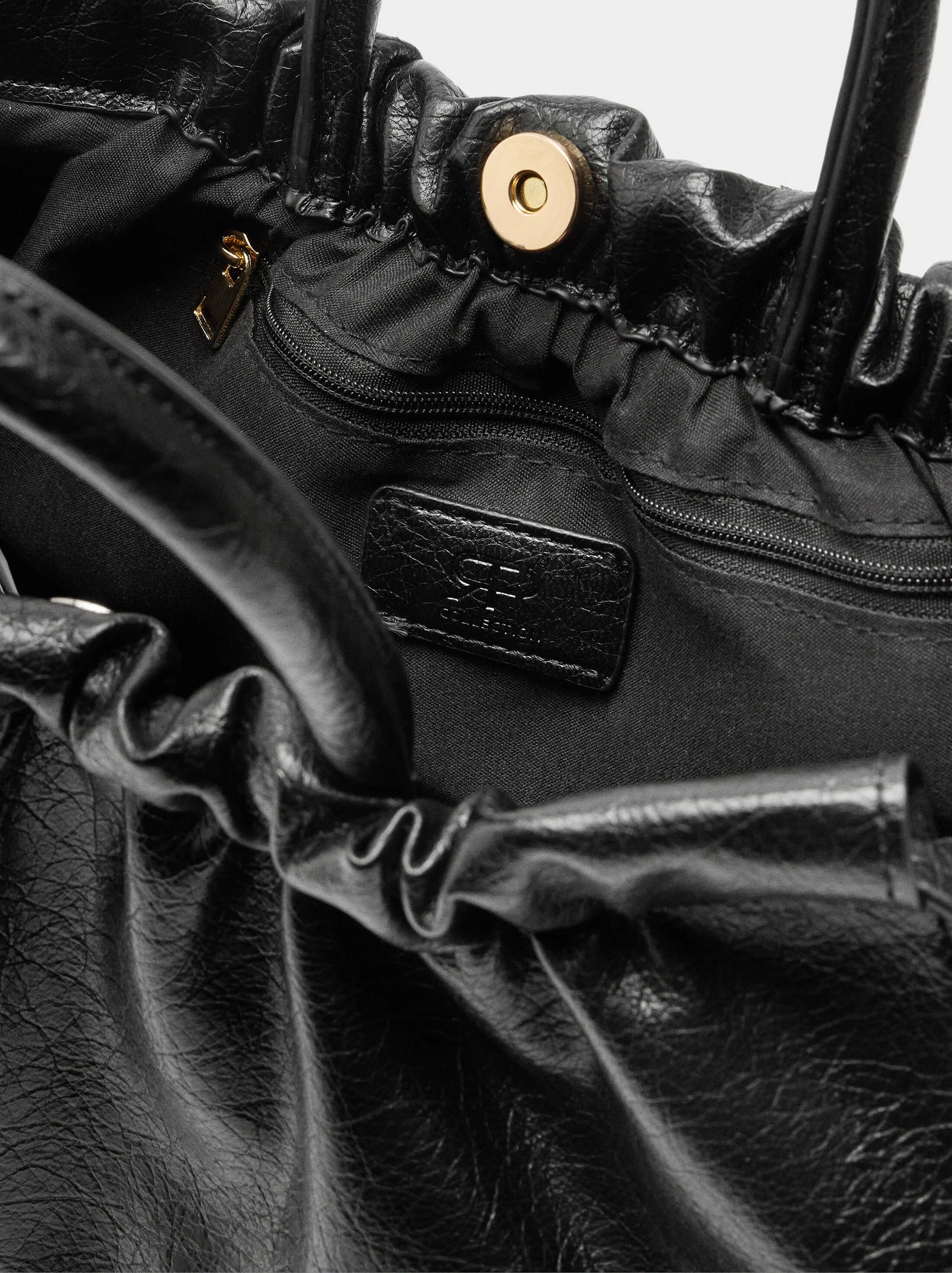 Bolso shopper grande con fruncido en el borde superior. Efecto craquelado. Forro y bolsillo interior. Cierre de imán. Asas de mano fijas. Asa bandolera ajustable y extraíble.