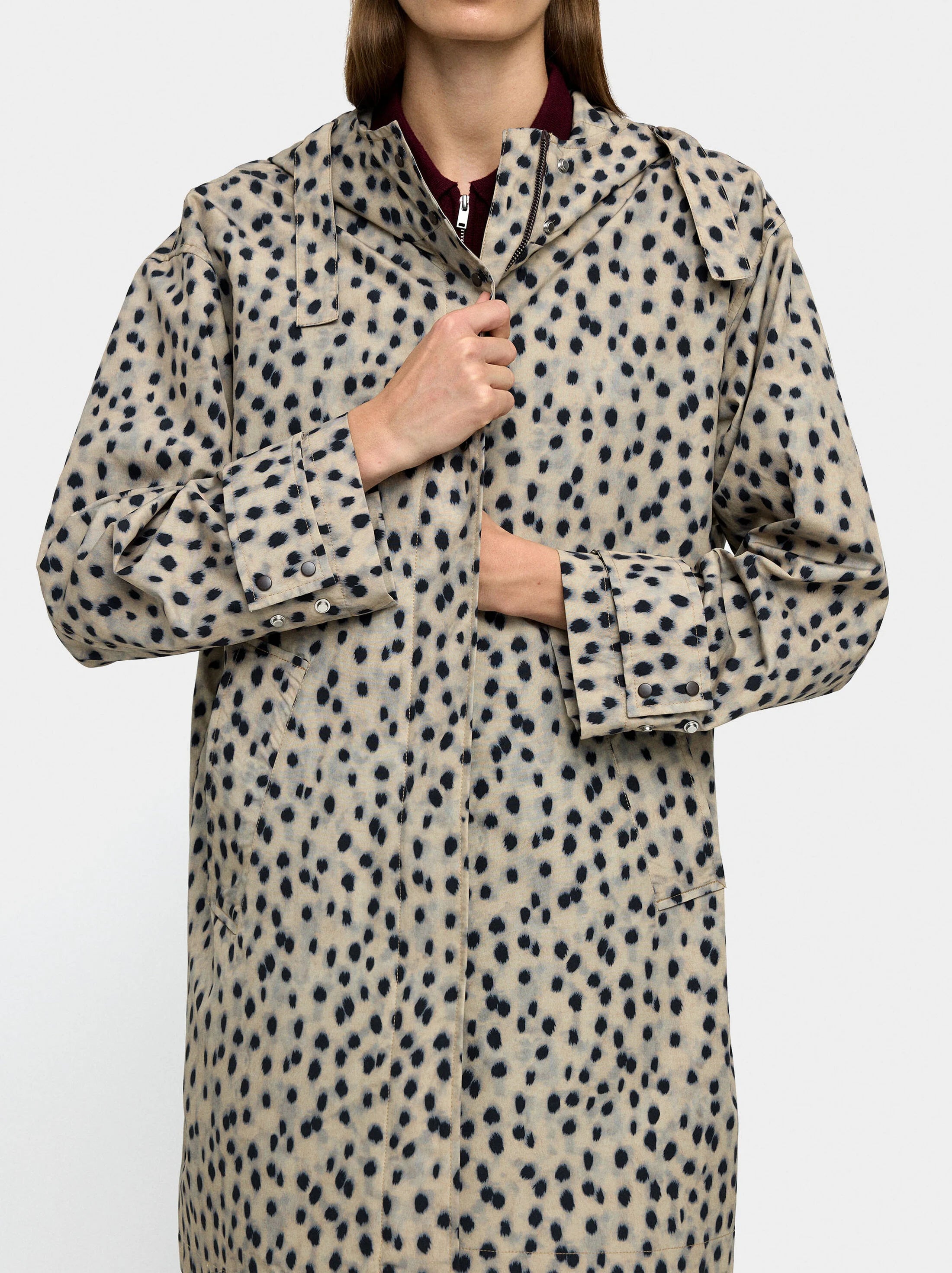 Parka con capucha y estampado animal. Cuello alto. Manga larga; puños con botones. Bolsillos laterales. Abertura con botones y cierre de cremallera oculto. La modelo mide 1,79 m y lleva la talla XS-S.