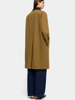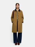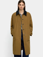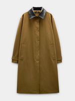 Trench de algodón con cuello en contraste, efecto piel. Manga larga; puños con botones. Bolsillos laterales. Abertura con botones y cierre de cremallera oculto. La modelo mide 1,79 m y lleva la talla XS-S.