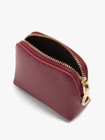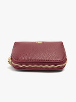 Monedero liso. Formato rectangular con acabados redondeados. Forro interior. Cierre de cremallera.