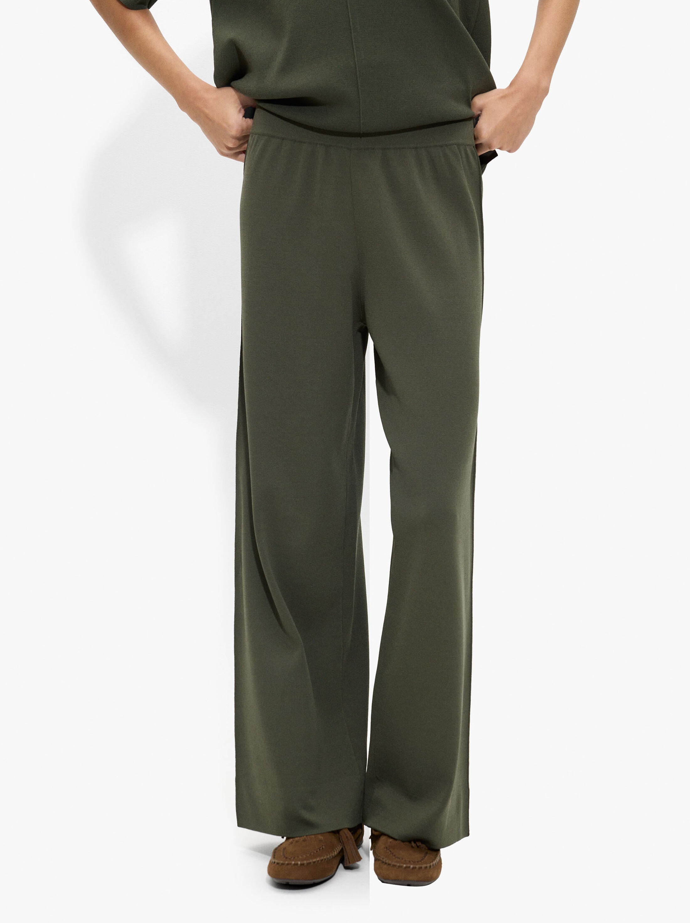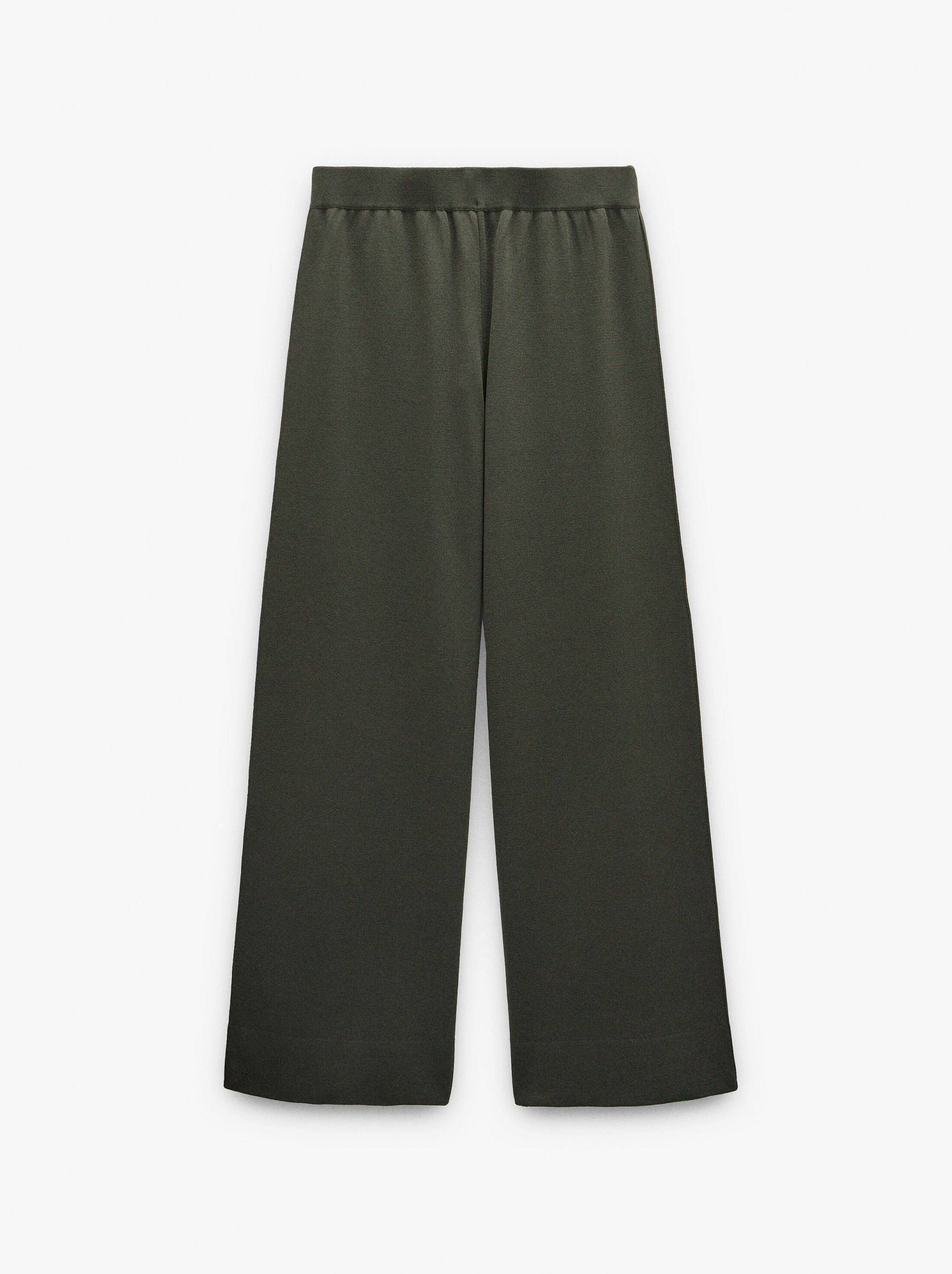 Pantalón liso de punto. Corte recto. Cintura elástica. La modelo mide 1,79 m y lleva la talla XS-S.