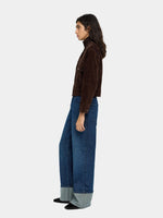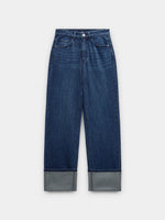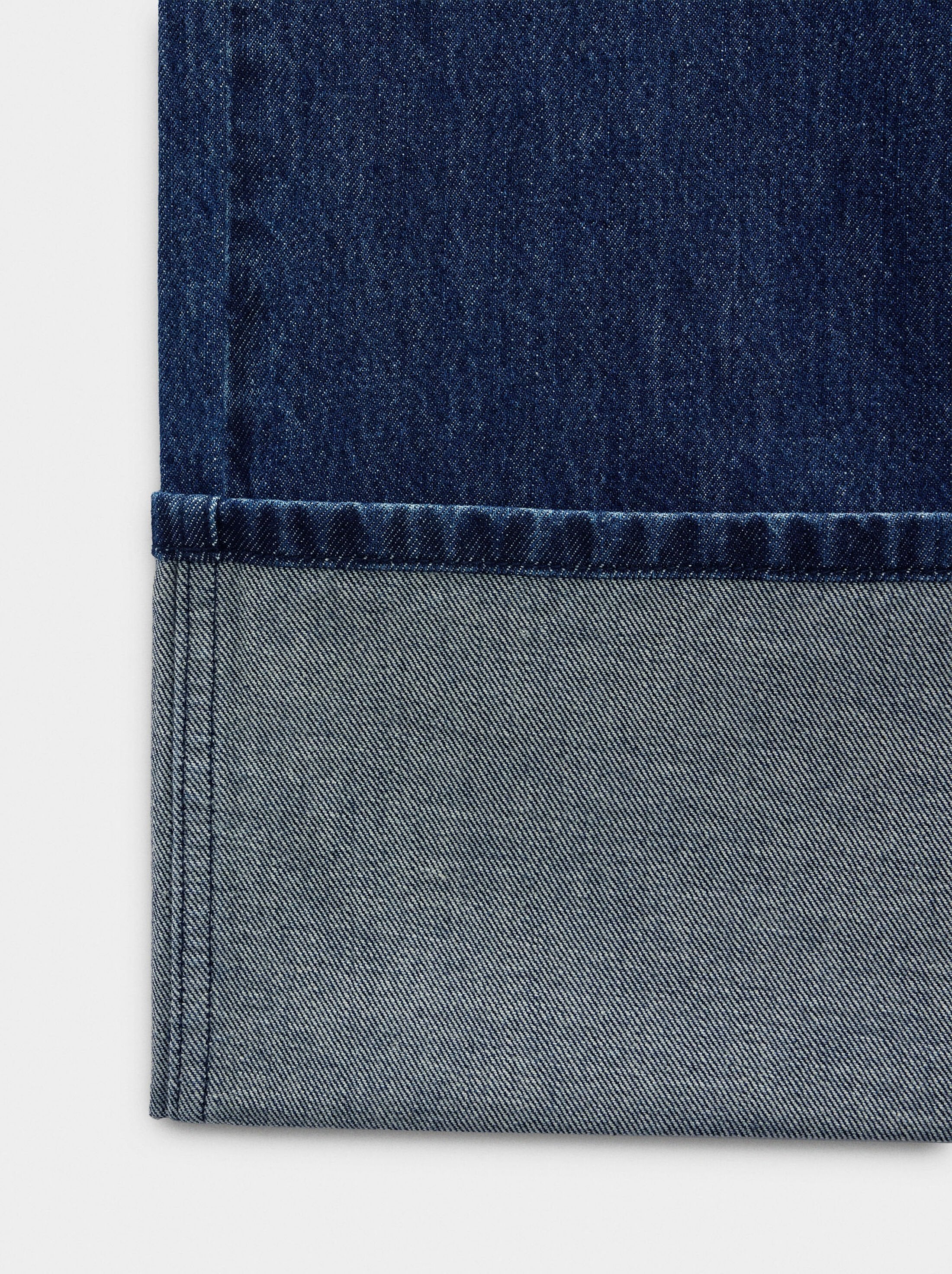Pantalón vaquero 100% algodón de estilo baggy. Efecto lavado en la parte superior. Abertura con botón y cierre de cremallera. Tres bolsillos delanteros y dos traseros. Bajo con dobladillo. La modelo mide 1,76 m y lleva la talla 38.