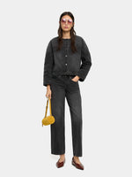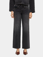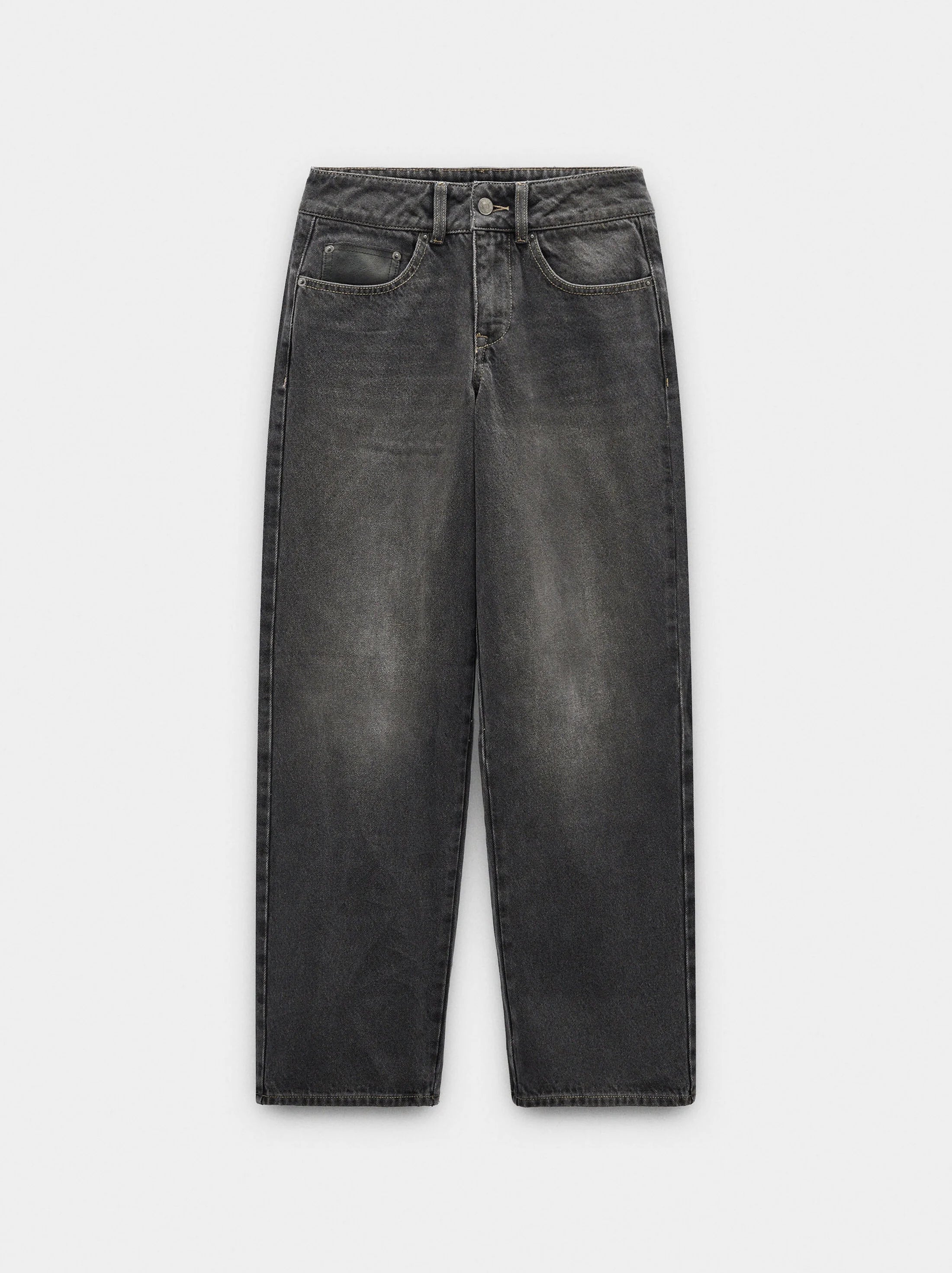 Pantalón vaquero efecto lavado. Tres bolsillos delanteros, uno de ellos con efecto piel. Dos bolsillos traseros. Abertura con botón y cierre de cremallera. Trabillas. La modelo mide 1,80 m y viste la talla XS-S.
