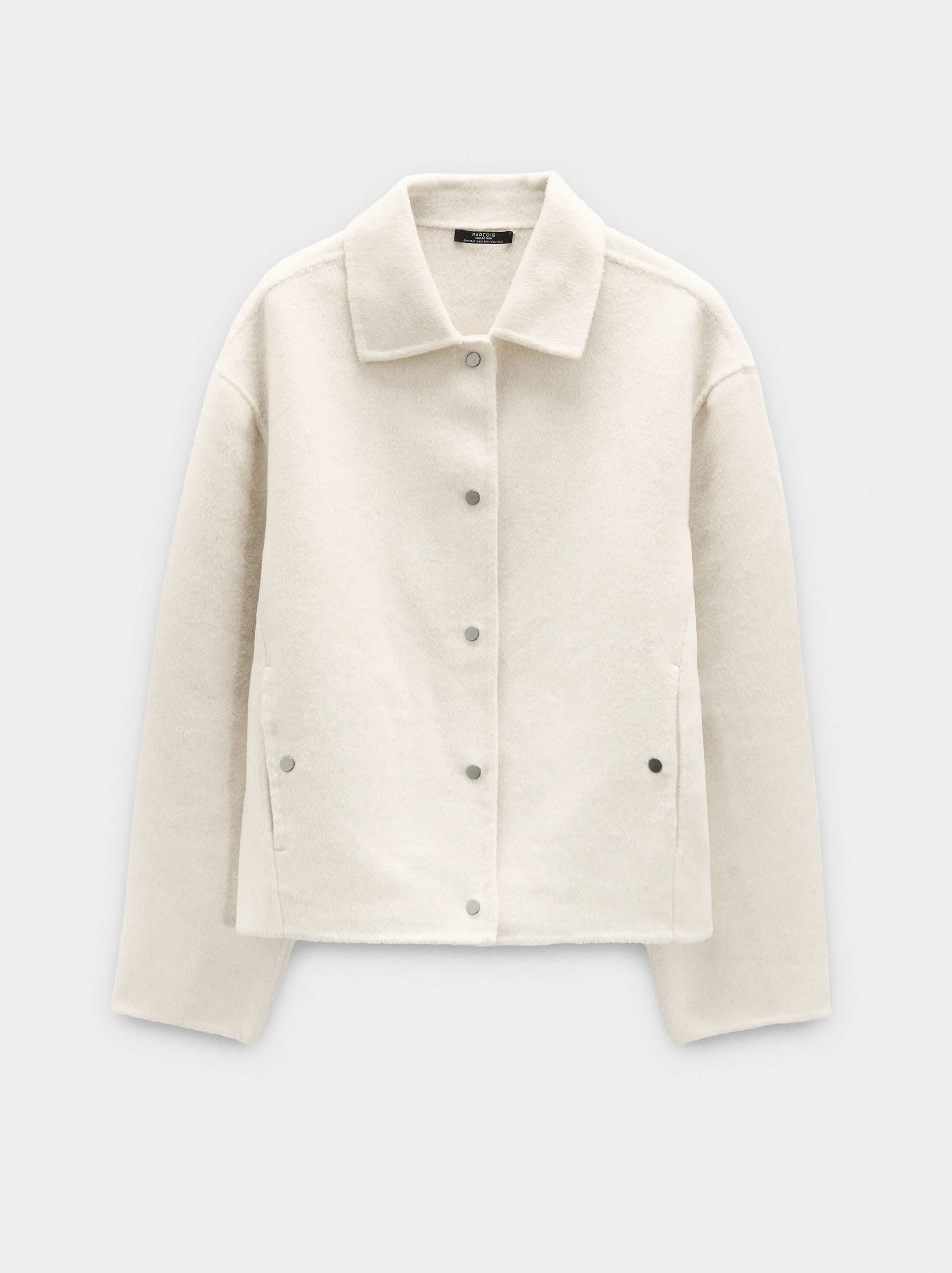 Abrigo artesanal confeccionado a mano en una delicada mezcla de lana, que combina calor, suavidad y durabilidad. Presenta un cuello de solapa elegante, mangas largas para mayor comodidad y un cierre de presión con botones que facilita su uso. El detalle de botones en la parte posterior aporta un toque distintivo y sofisticado. Ideal para looks versátiles, ya que combina estilo, funcionalidad y exclusividad. La modelo mide 1,78 m y lleva la talla XS-S.