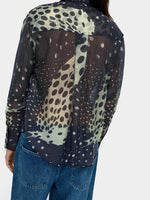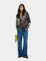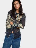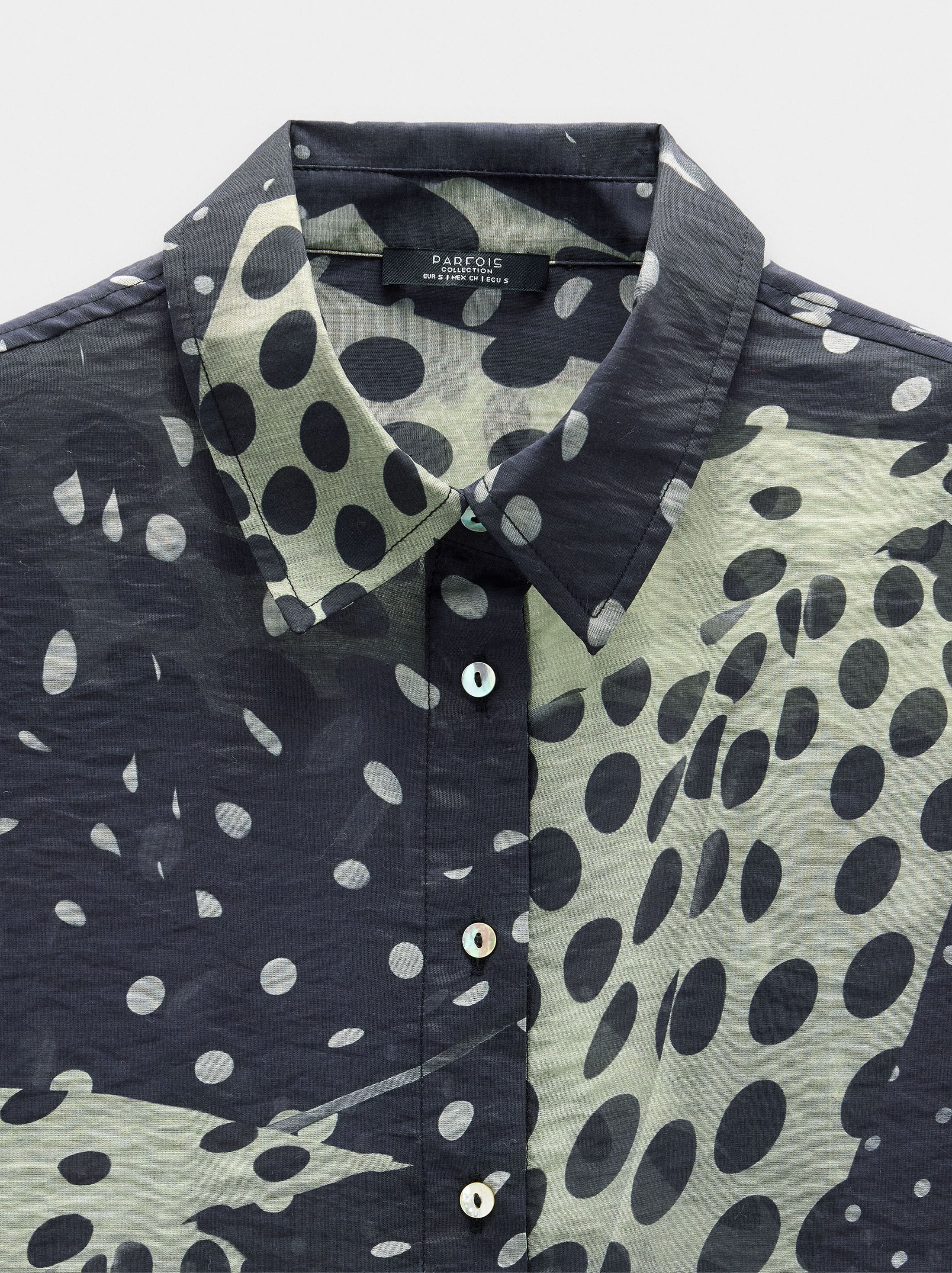 Camisa estampada semitransparente y fluida. Confeccionada en lyocell. Cuello de solapa. Camisa de manga larga con botones en los puños. Abertura con botones. La modelo mide 1,76 m y lleva la talla S.