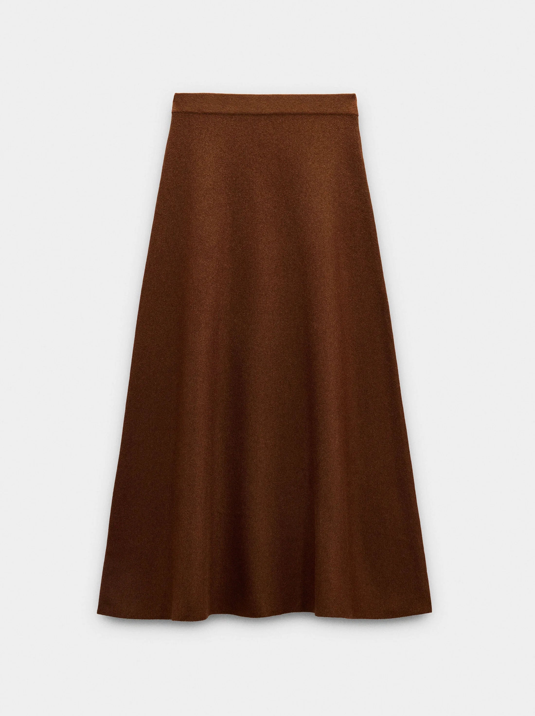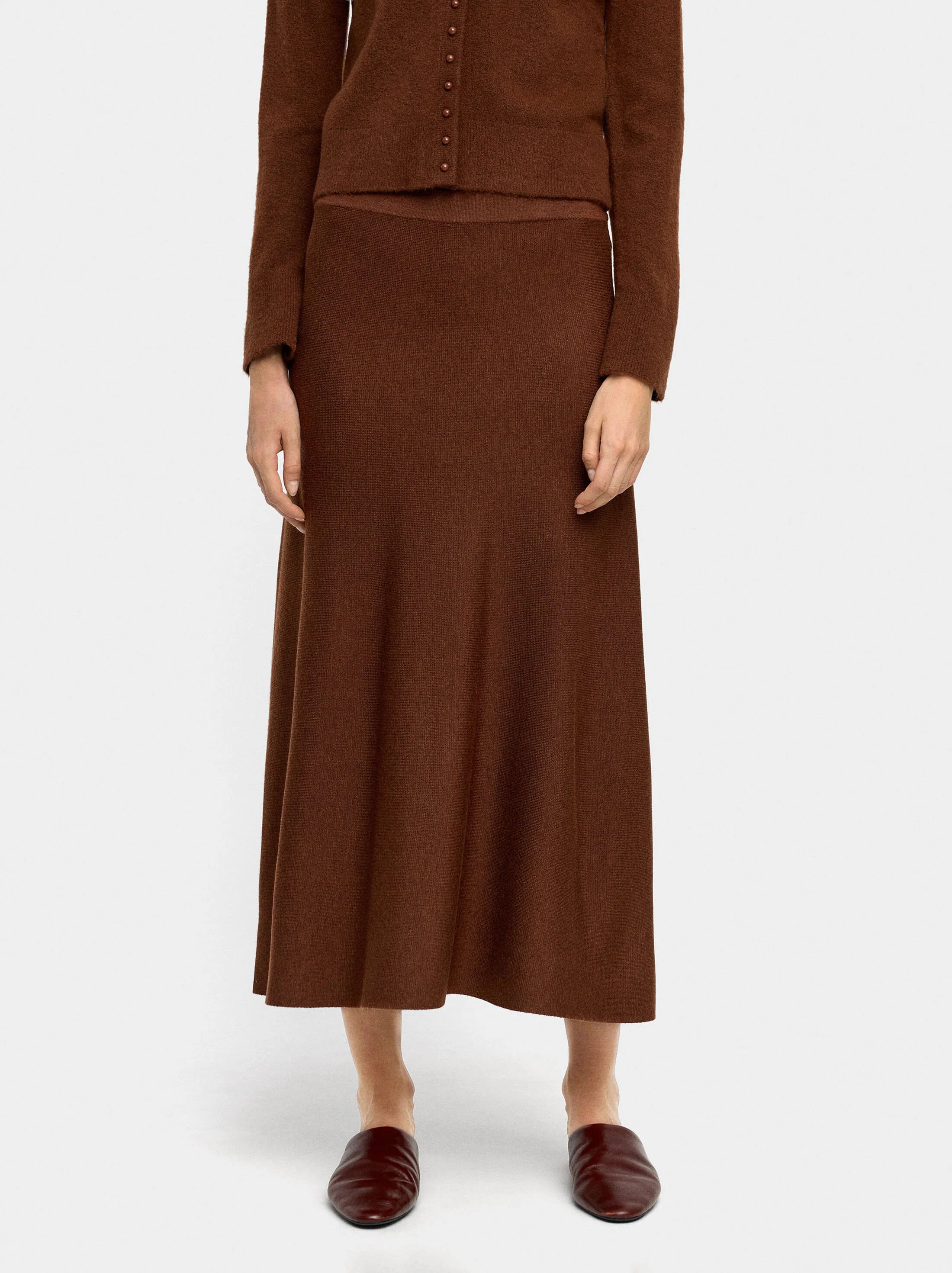 Falda midi de punto. Cintura elástica. Corte evasé. La modelo mide 1,79 m y lleva la talla XS-S.
