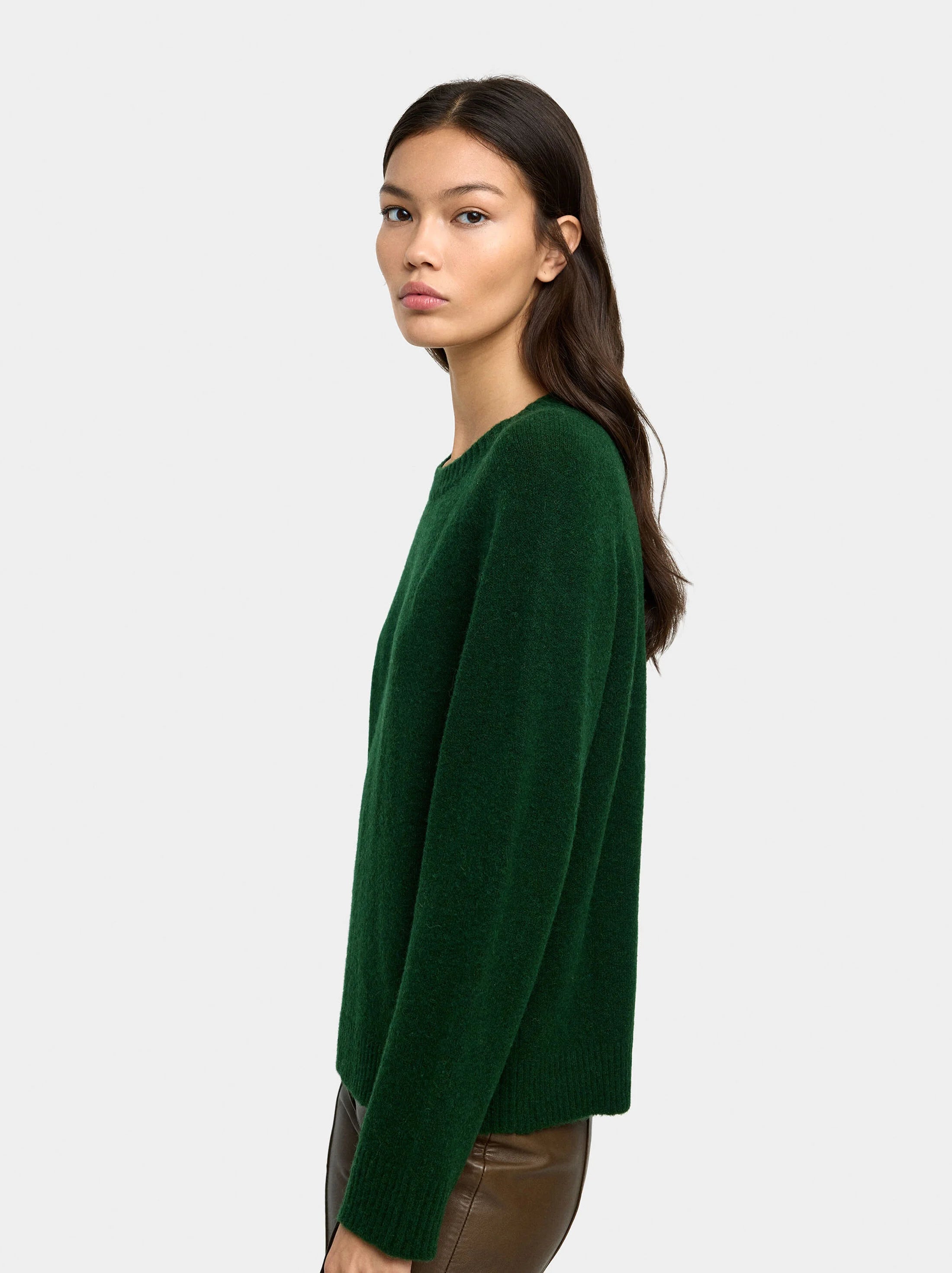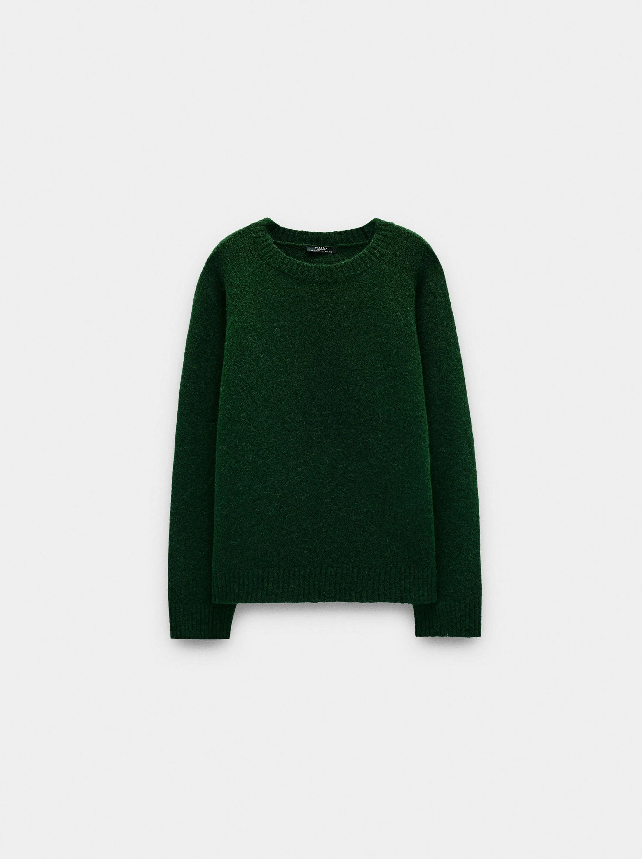 Jersey de punto con mezcla de lana. Cuello redondo. Manga larga. Bordes canalados. La modelo mide 1,80 m y lleva la talla XS-S.