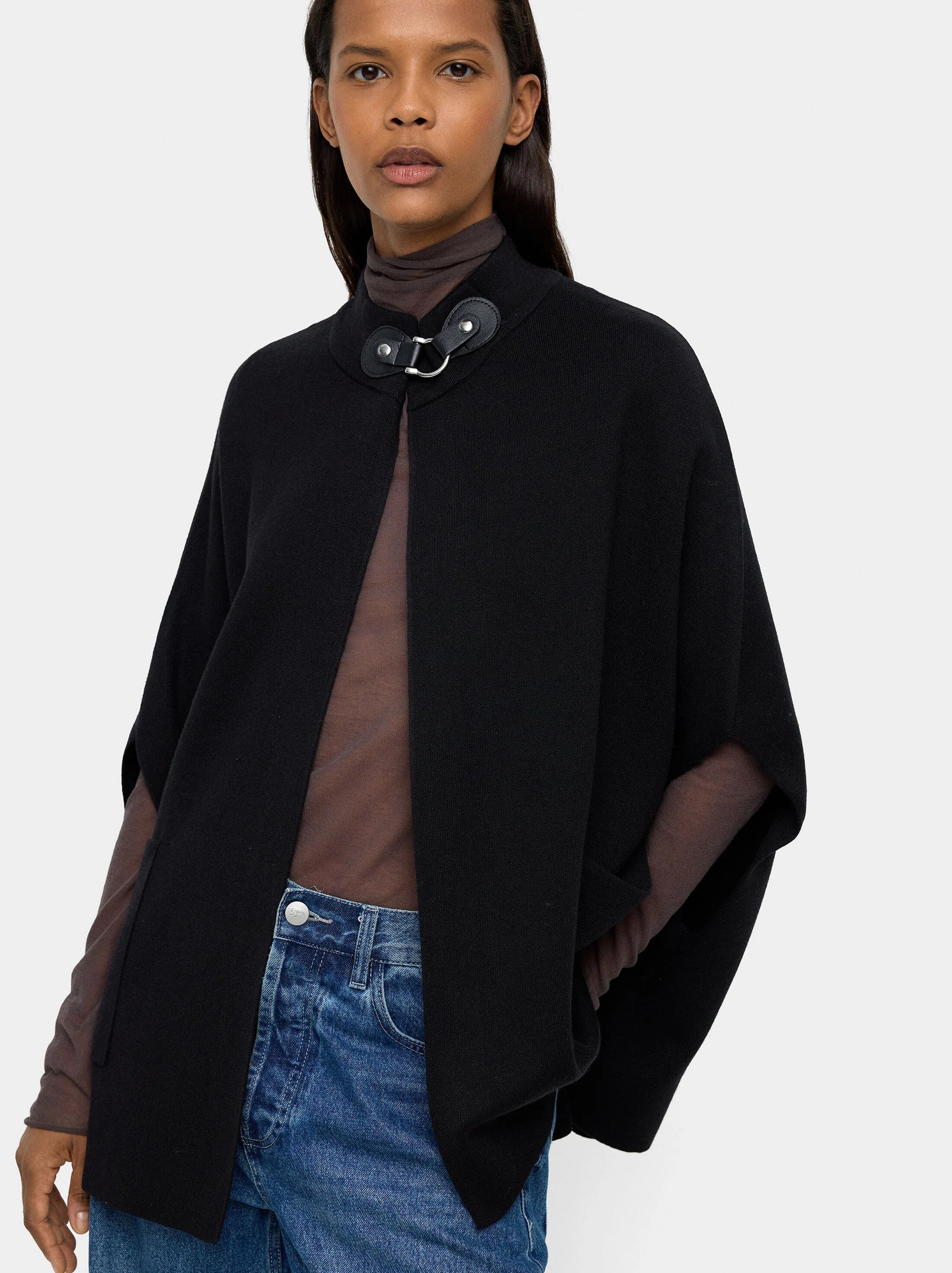 Poncho de punto con cuello alto. Cierre con hebilla. Bolsillos laterales. Artículo disponible en talla única, diseñado para crear las siluetas más variadas y para adaptarse a diferentes tipos de cuerpo. La modelo mide 1,79 m.