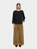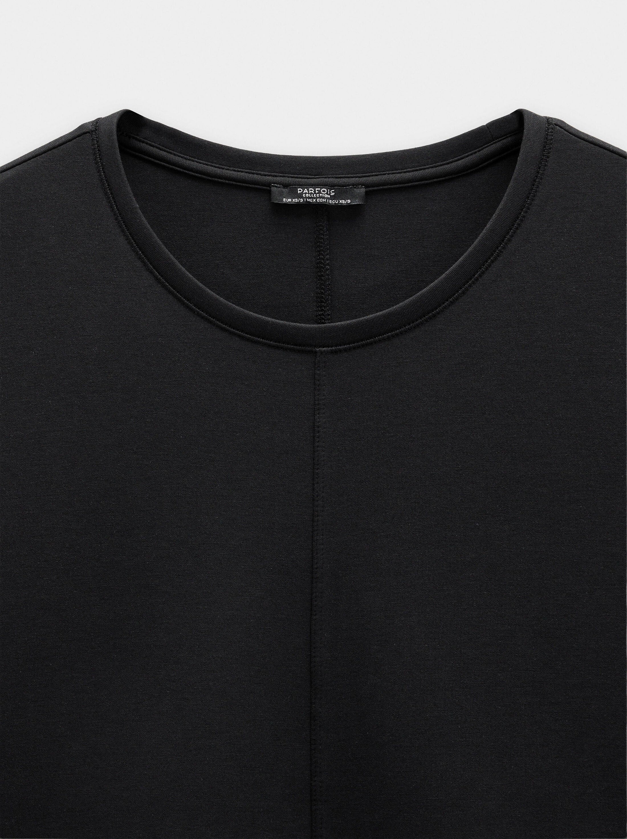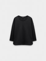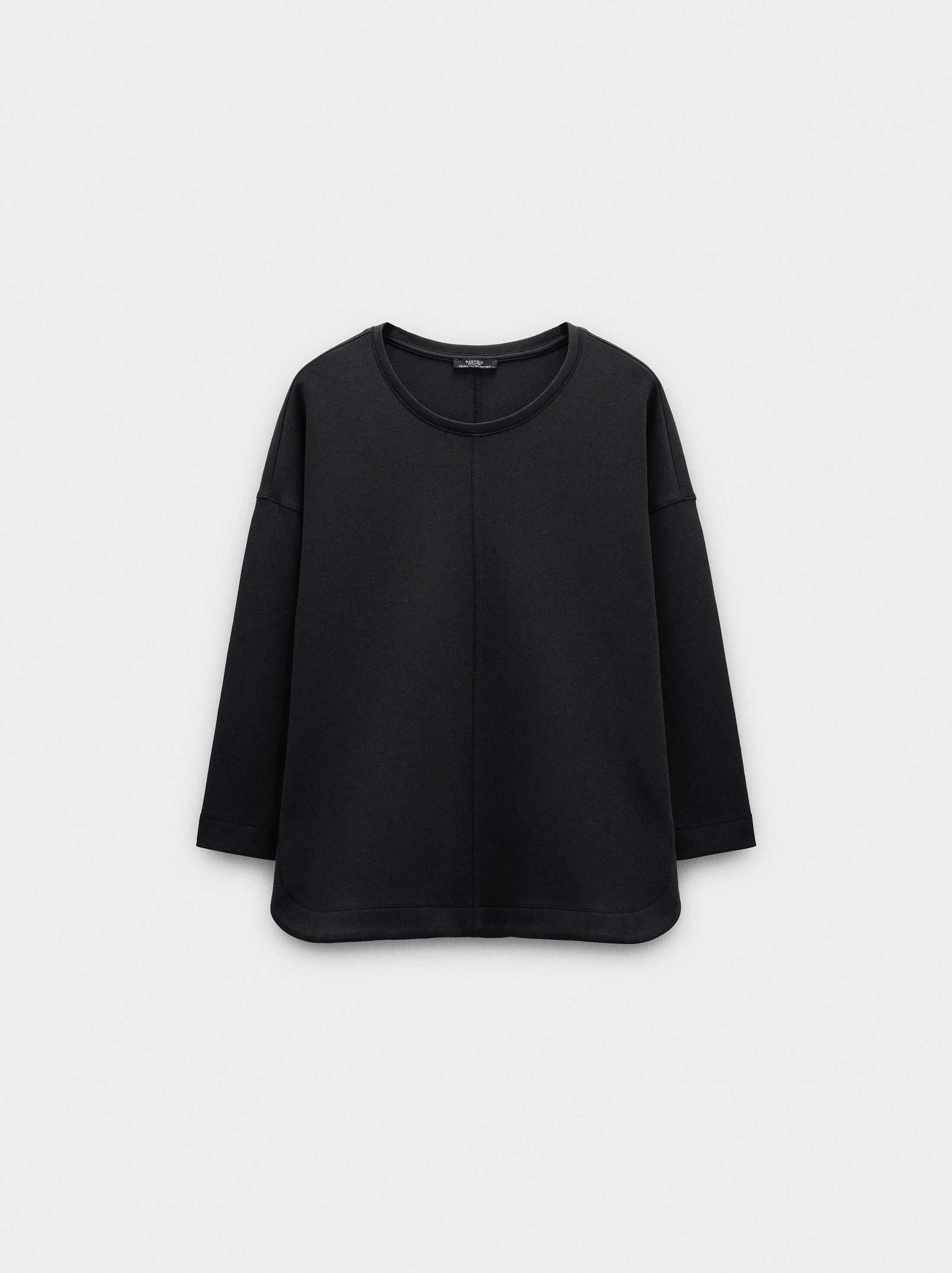 Sudadera básica. Costuras marcadas en el medio, por delante y por detrás. Cuello redondo. Manga larga. Bajo redondeado con aberturas laterales inferiores. La modelo mide 1,79 m y lleva la talla XS-S.